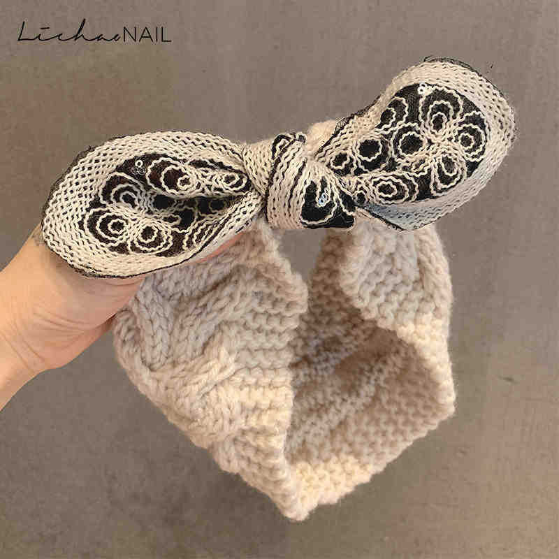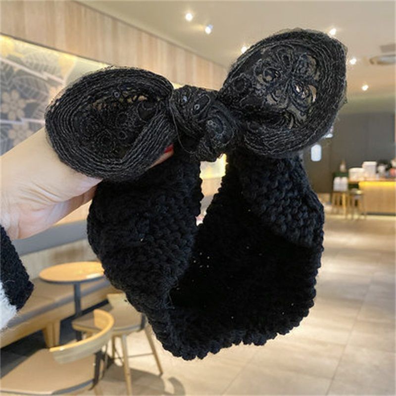 韩国网红针织毛线蝴蝶结亮片甜美发带发箍头箍发饰品女