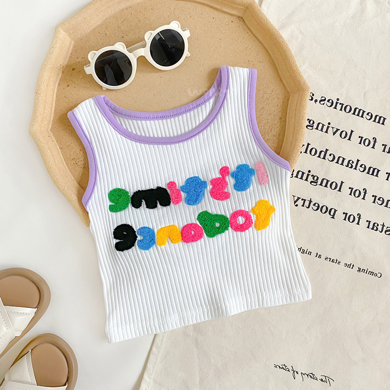 夏季女童背心宝宝洋气儿童个性潮牌韩版拼色字母清新可爱外穿上衣