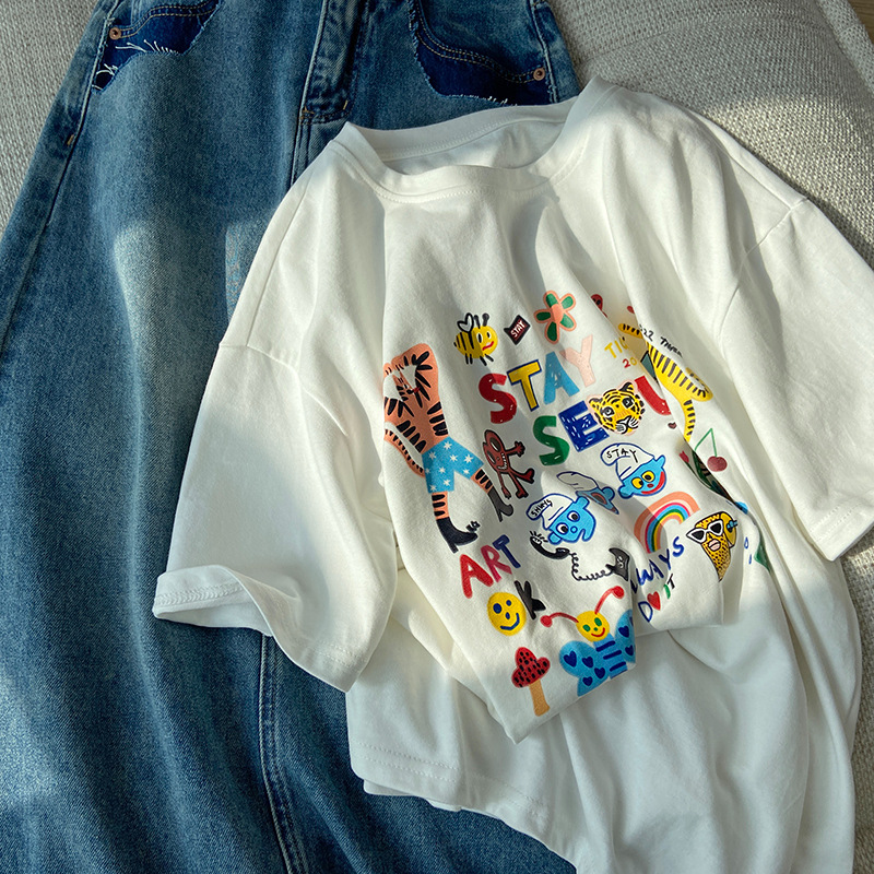 卡通趣味纯棉短袖T恤女韩版新款宽松显瘦oversize慵懒上衣夏