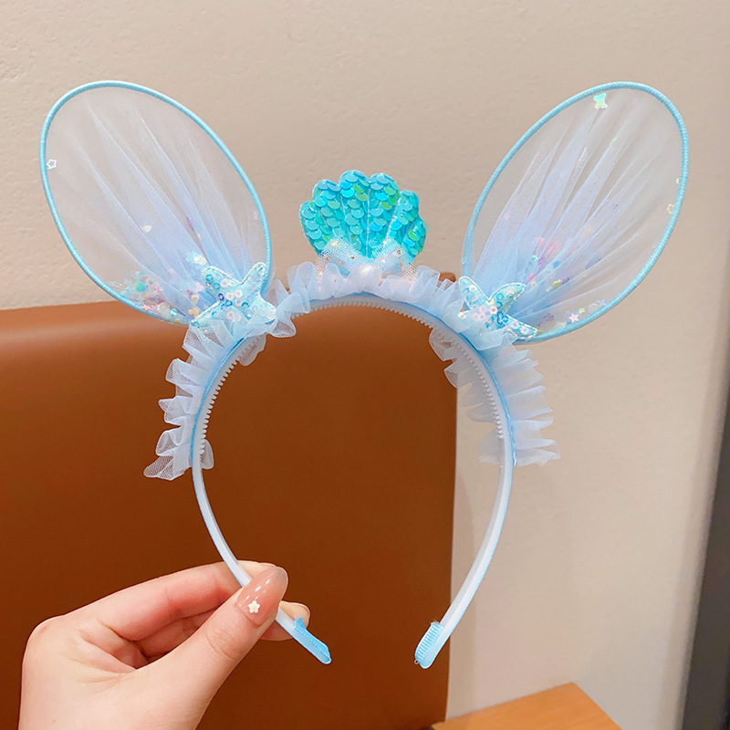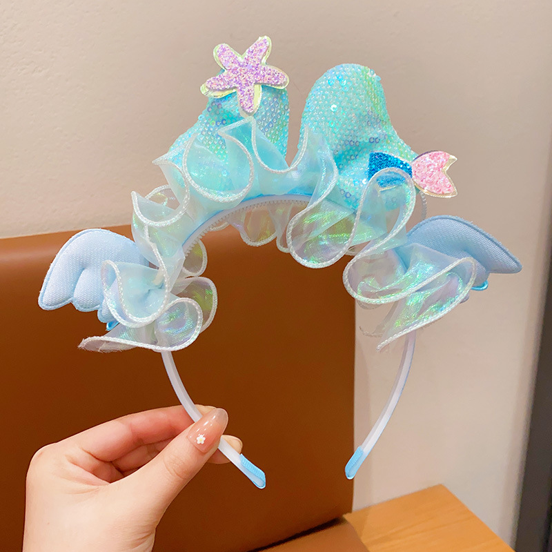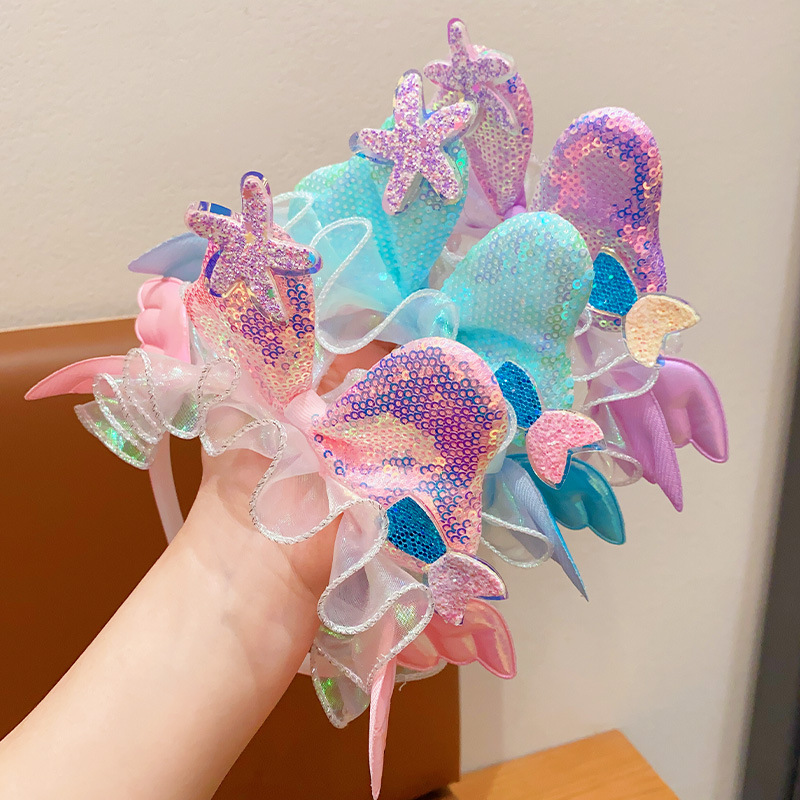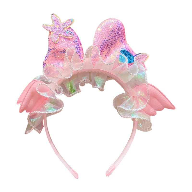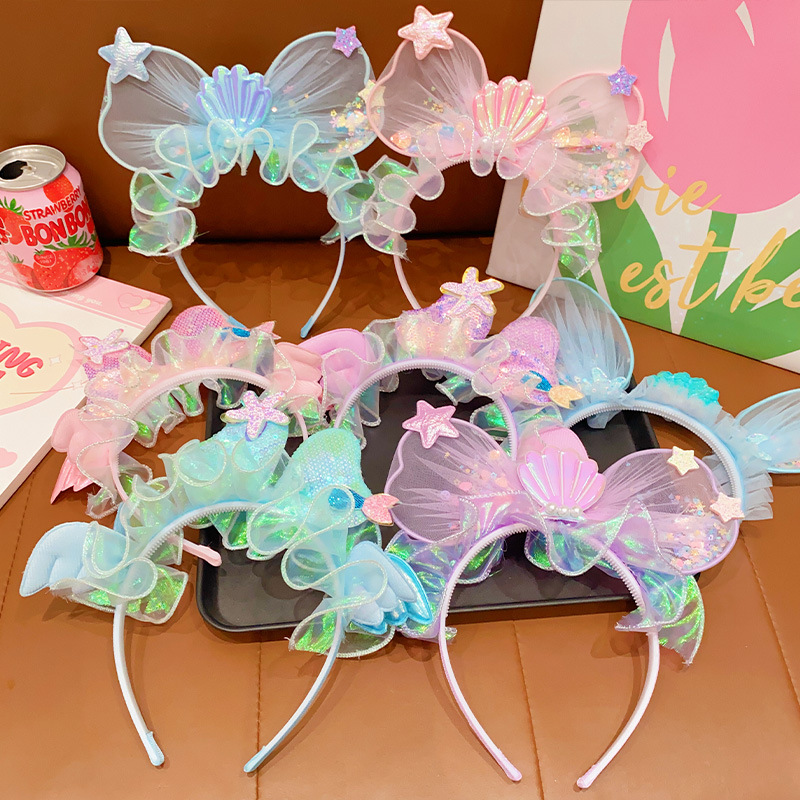 儿童亮片新款发箍女孩贝壳纱纱发卡小公主生日拍照发饰蝴蝶结头箍