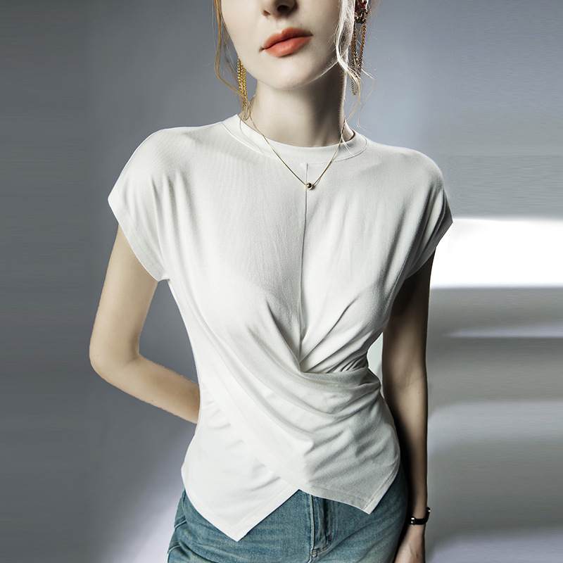 设计感不规则短袖夏季新款洋气T恤女盖袖