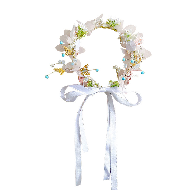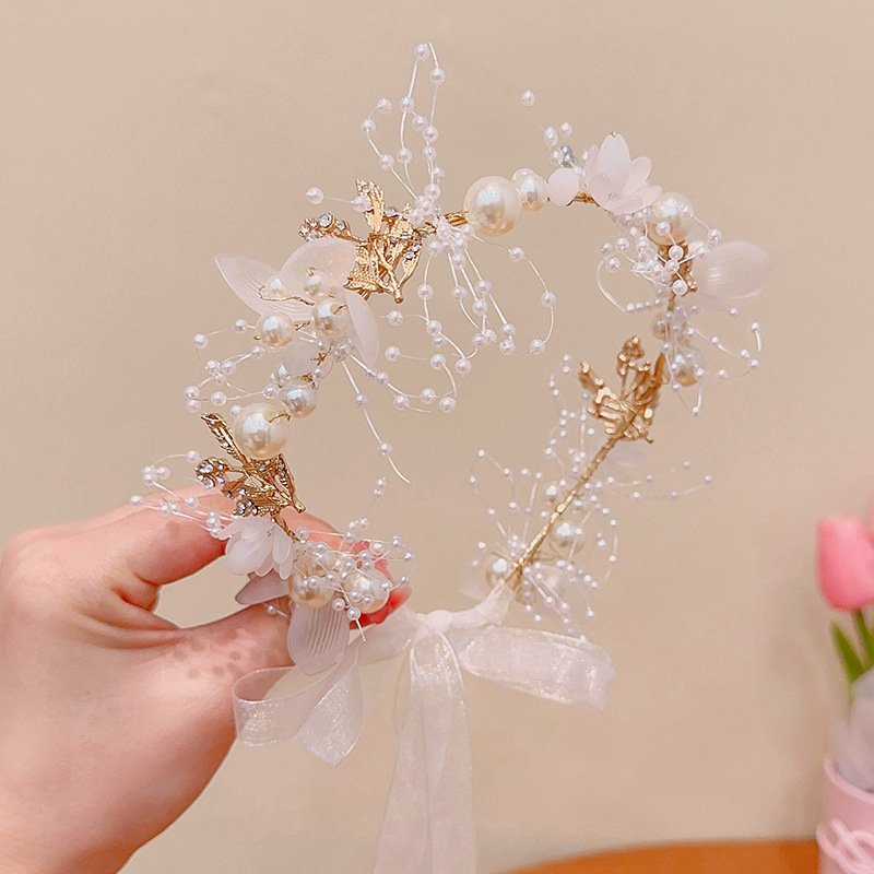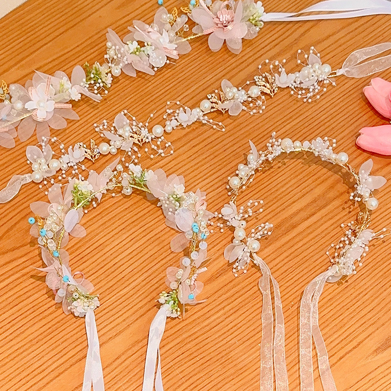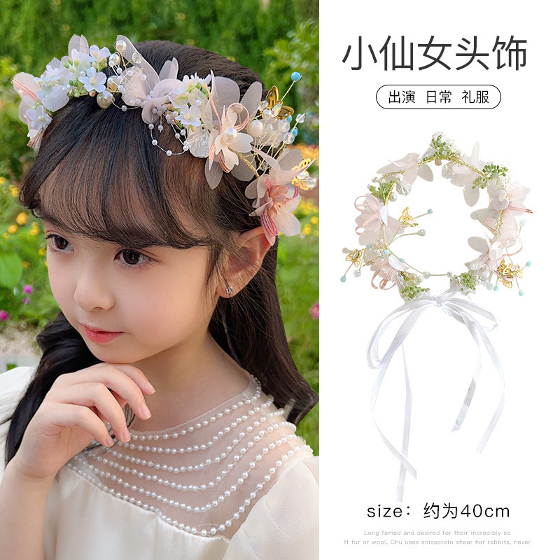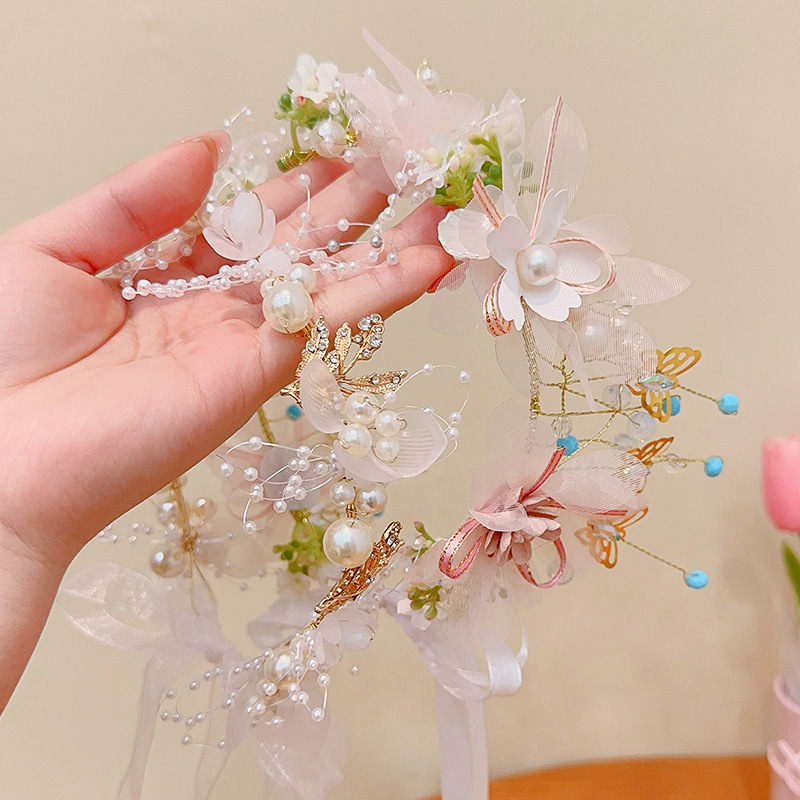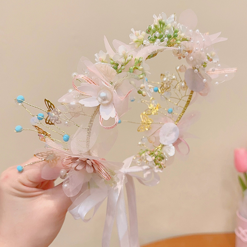 儿童珍珠玫瑰发箍女童公主风超仙蝴蝶结花环头箍小女孩压发卡头饰
