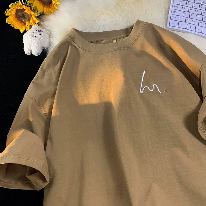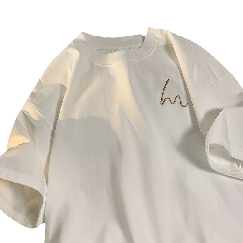 男士短袖t恤夏季新款简约潮流百搭印花纯棉重磅宽松半截袖体恤衫