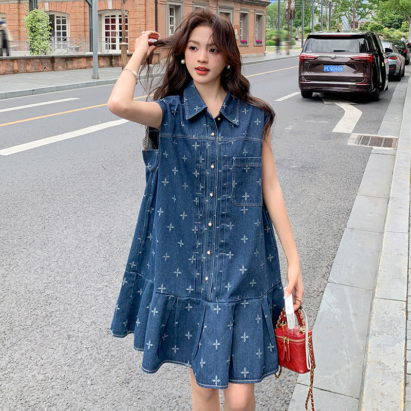 韩版显瘦无袖提花牛仔连衣裙子夏季新款休闲洋气小个子背心裙