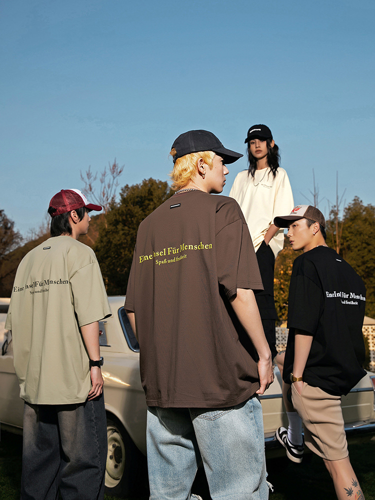 字母标语印花T恤男女同款情侣夏季宽松纯棉国潮短袖体恤