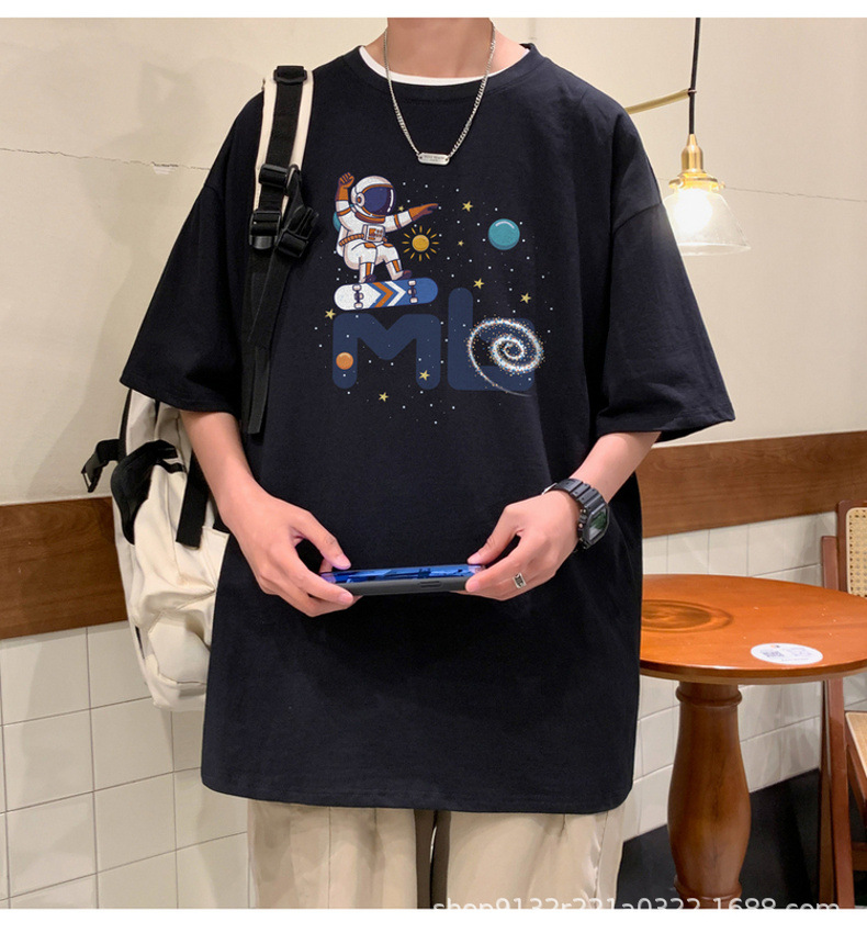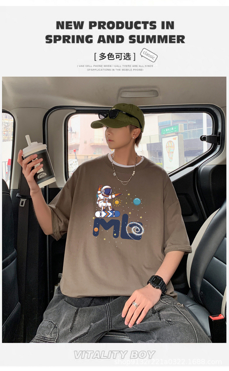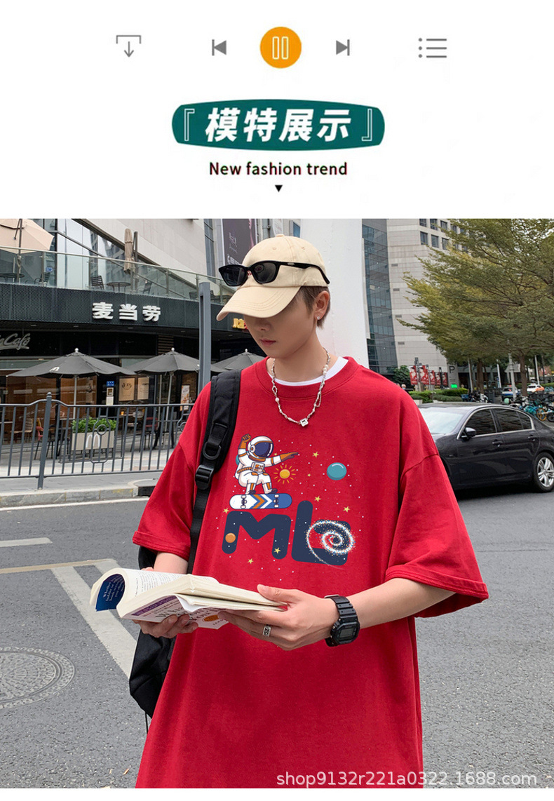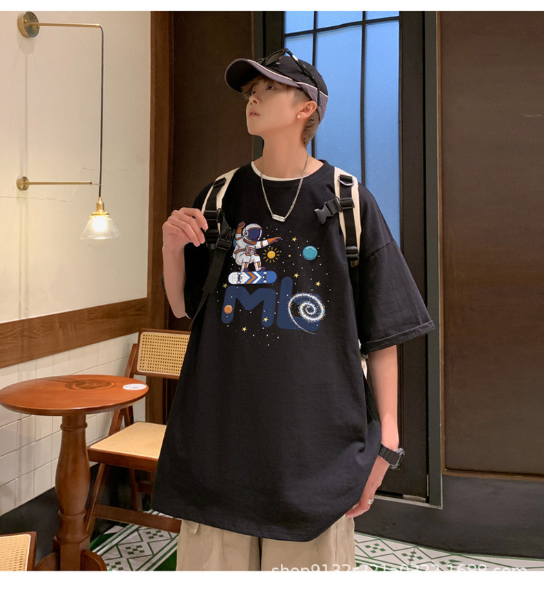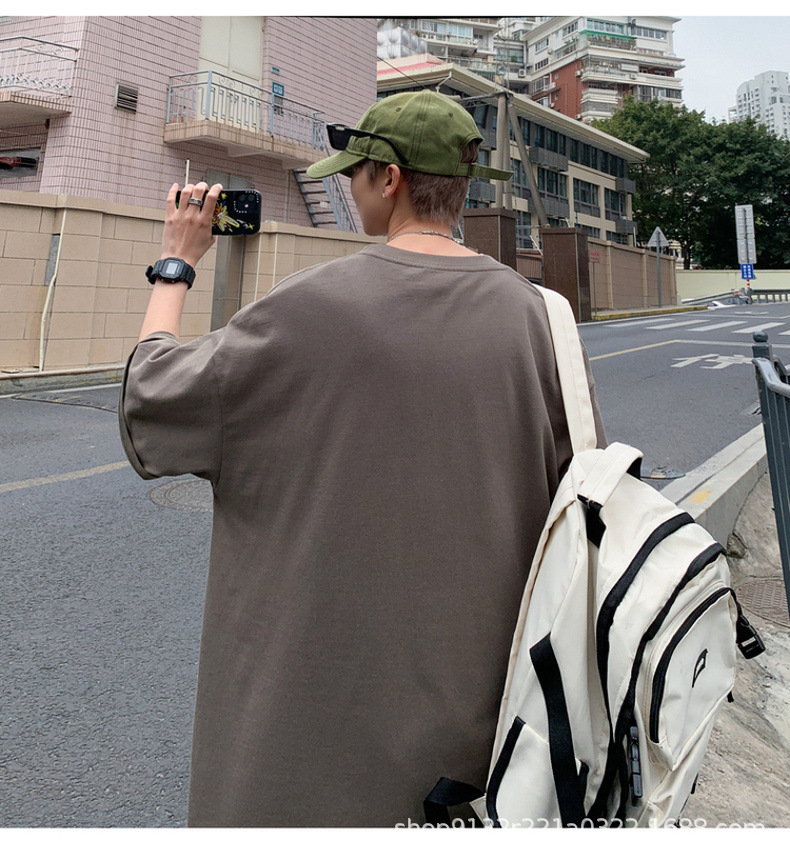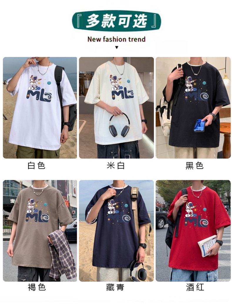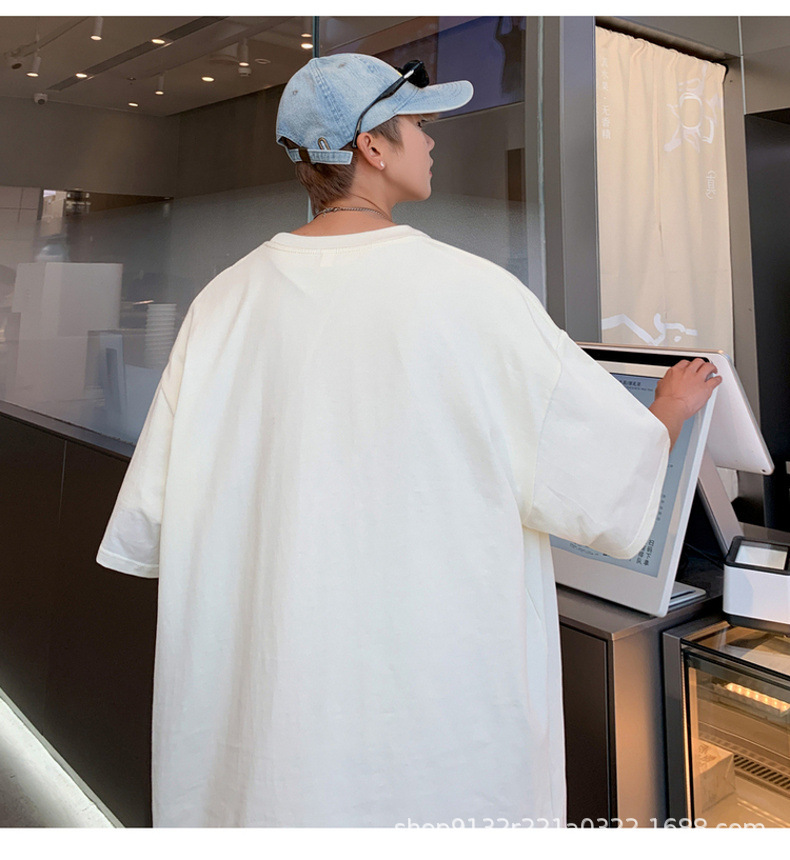 短袖男t恤夏季潮流百搭宽松半袖港风五分袖男生圆领体恤简约