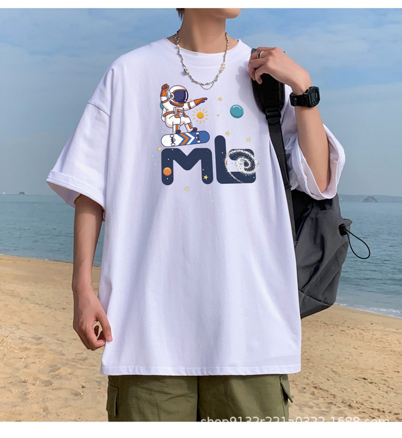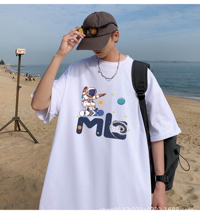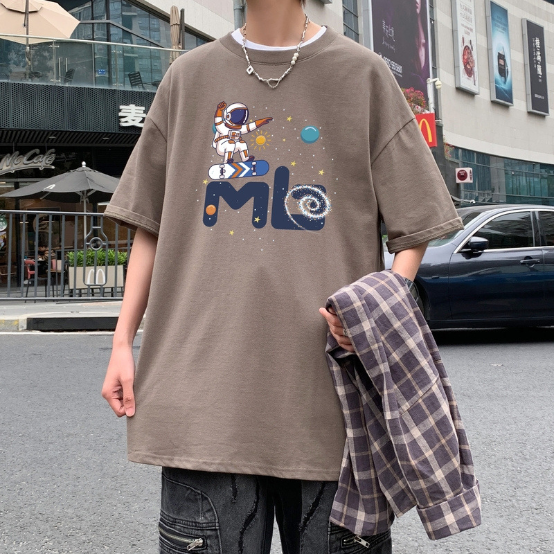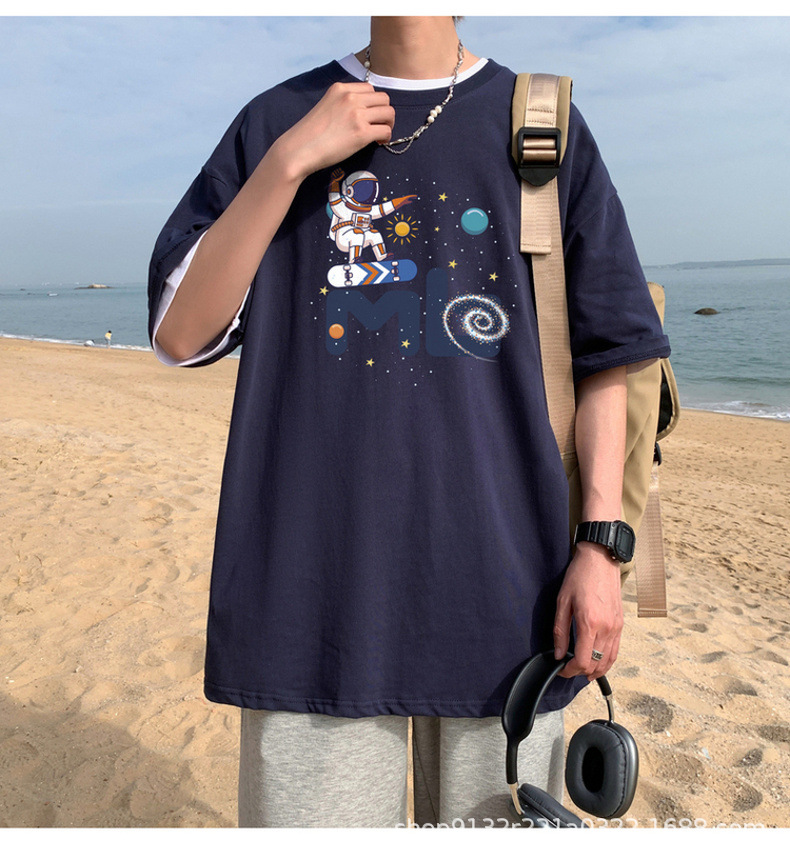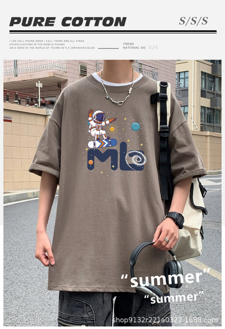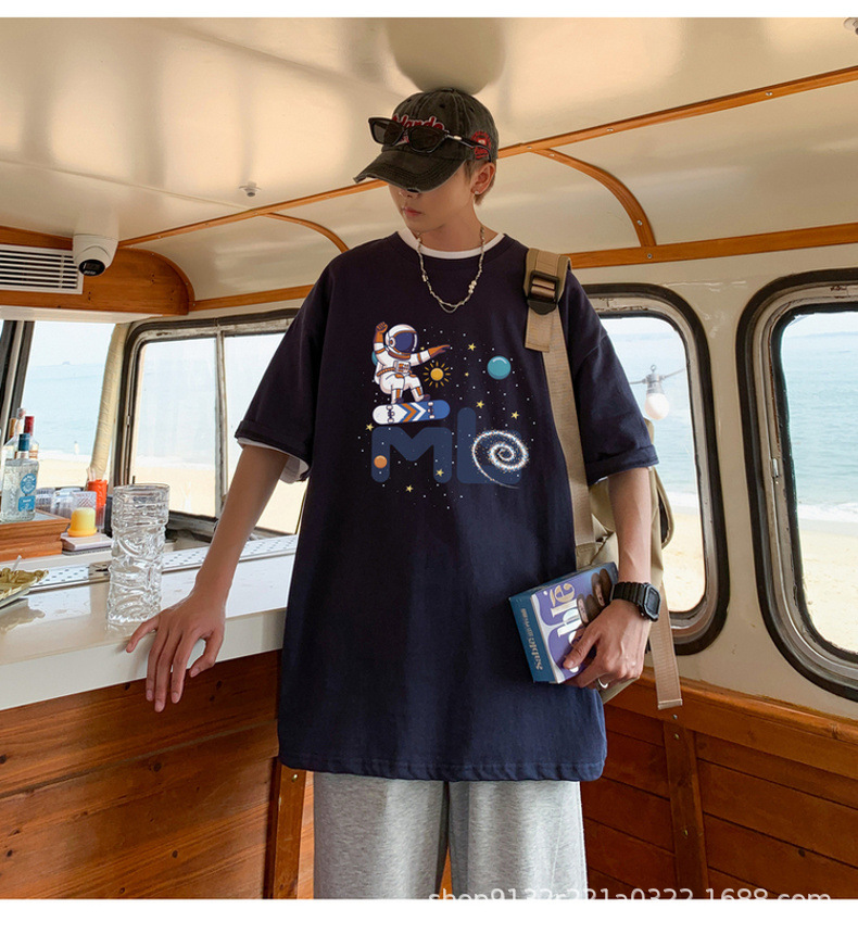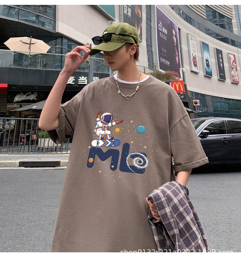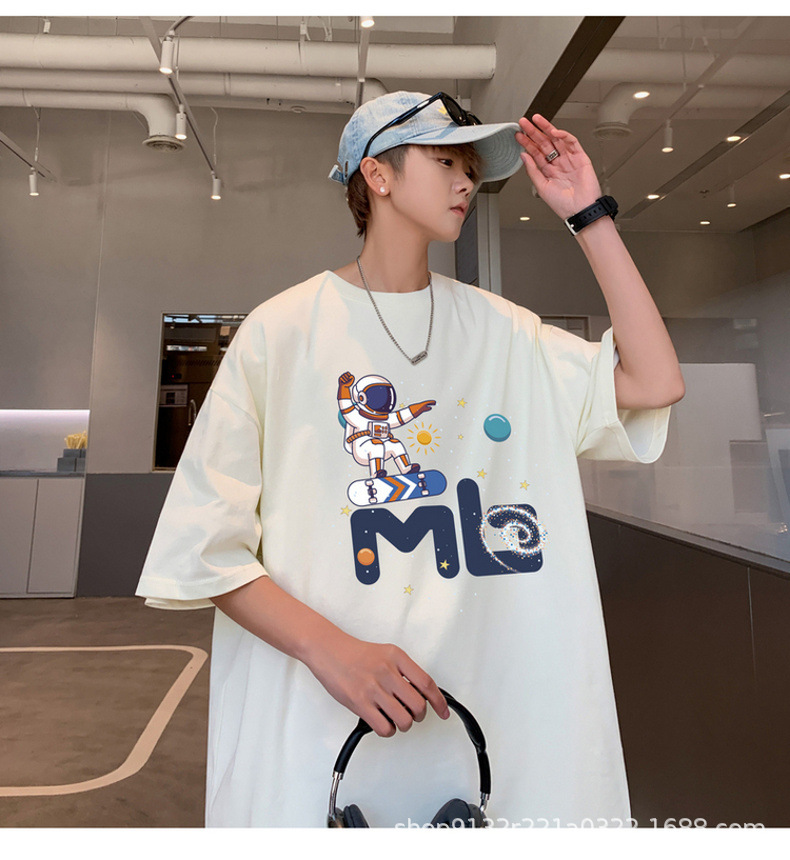 短袖男t恤夏季潮流百搭宽松半袖港风五分袖男生圆领体恤简约
