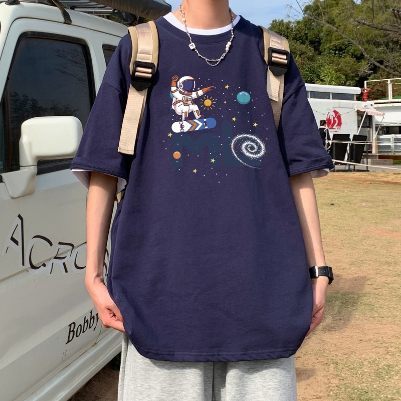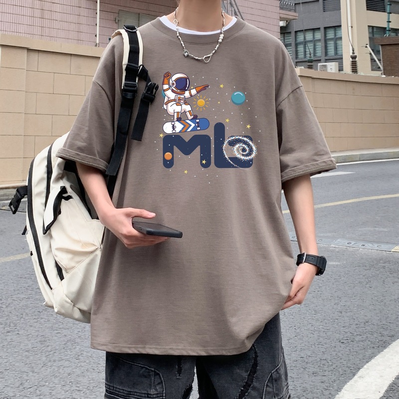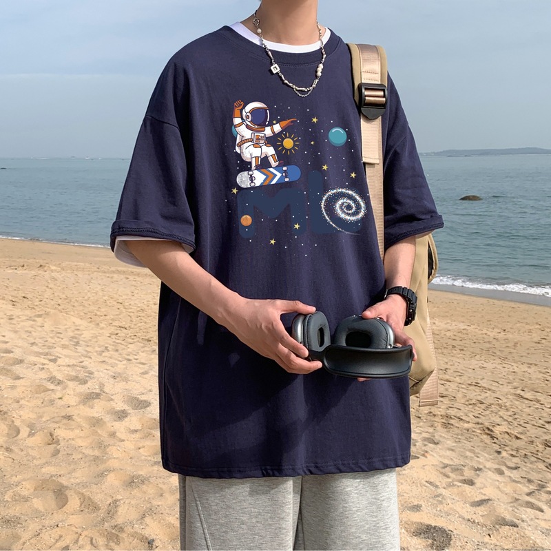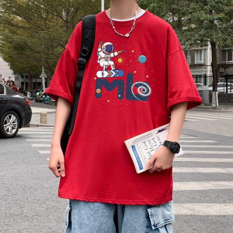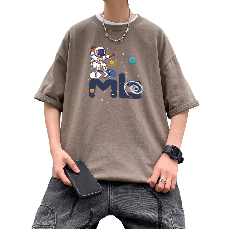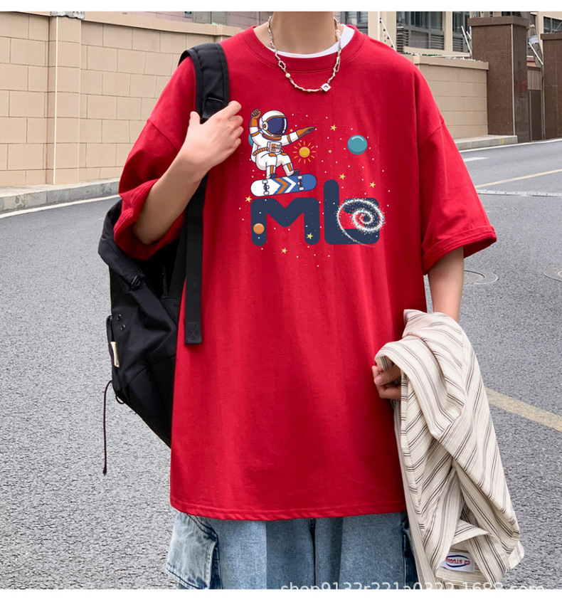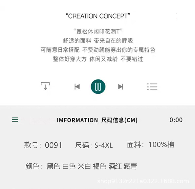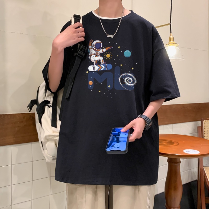 短袖男t恤夏季潮流百搭宽松半袖港风五分袖男生圆领体恤简约