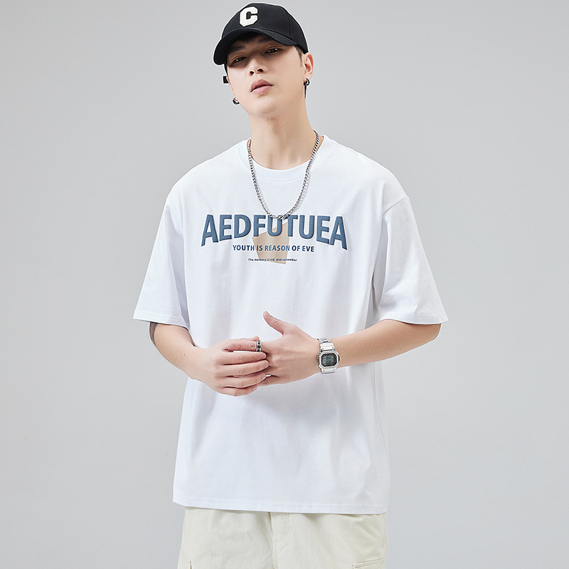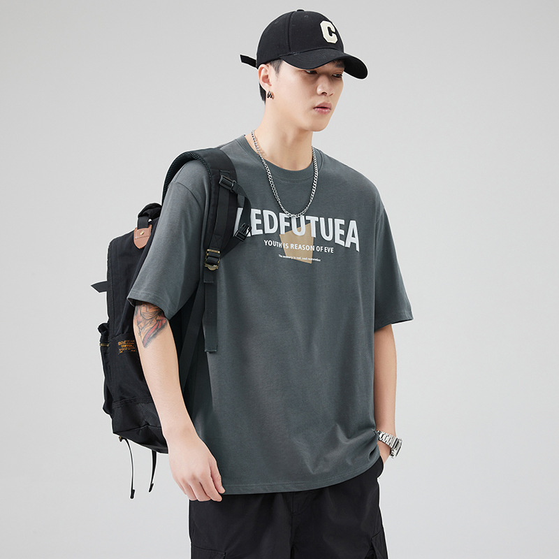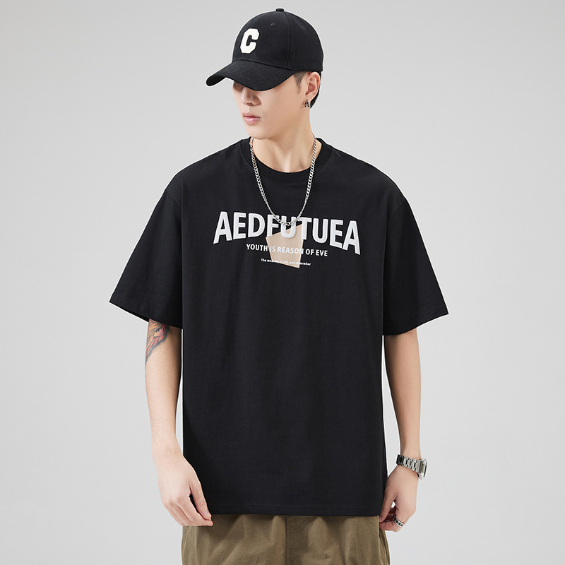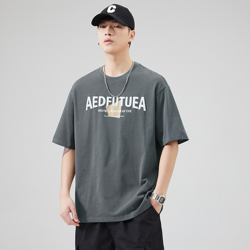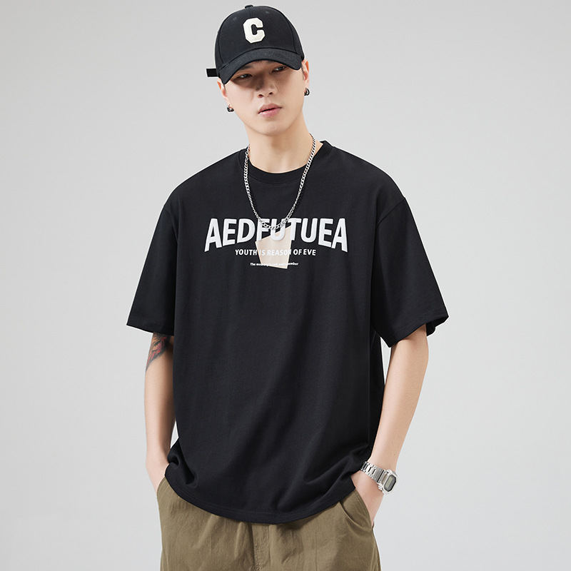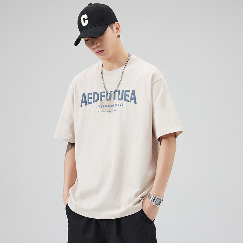 潮牌美式重磅短袖T恤男士宽松休闲纯棉上衣夏季潮流ins半袖体恤男