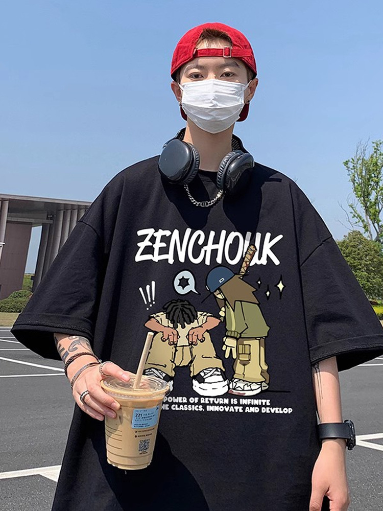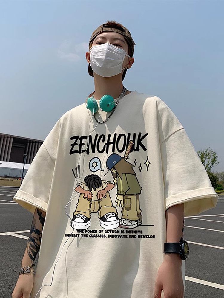 夏季新款纯棉短袖男士潮牌ins宽松休闲大码时尚印花半袖T恤衫