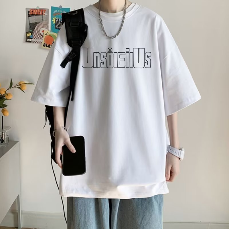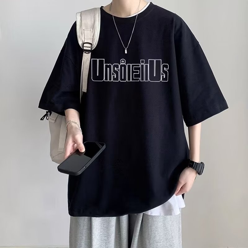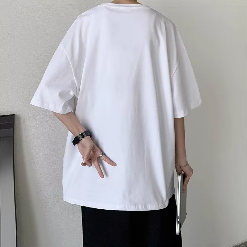 美式简约短袖t恤男士夏季青少年牛奶丝半袖体恤百搭宽松五分袖