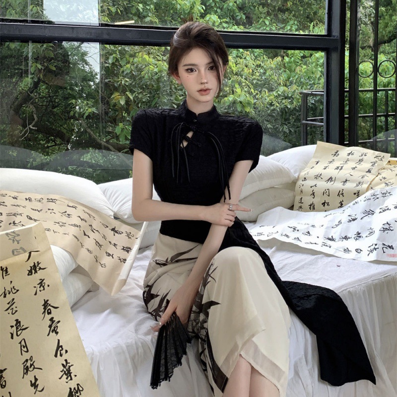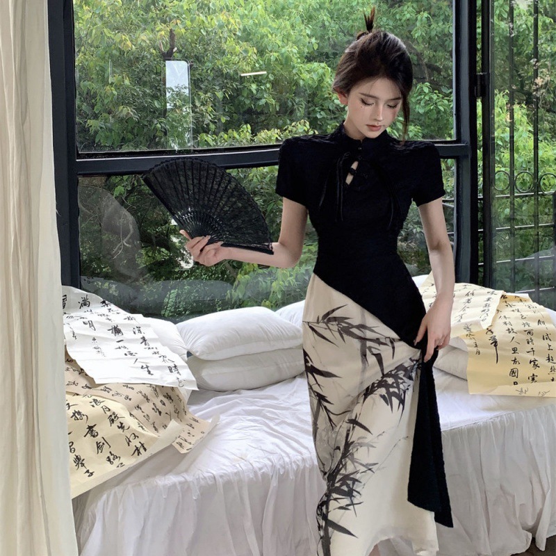 中式女装旗袍改良气质高级连衣裙夏季国风裙子设计水墨画长裙
