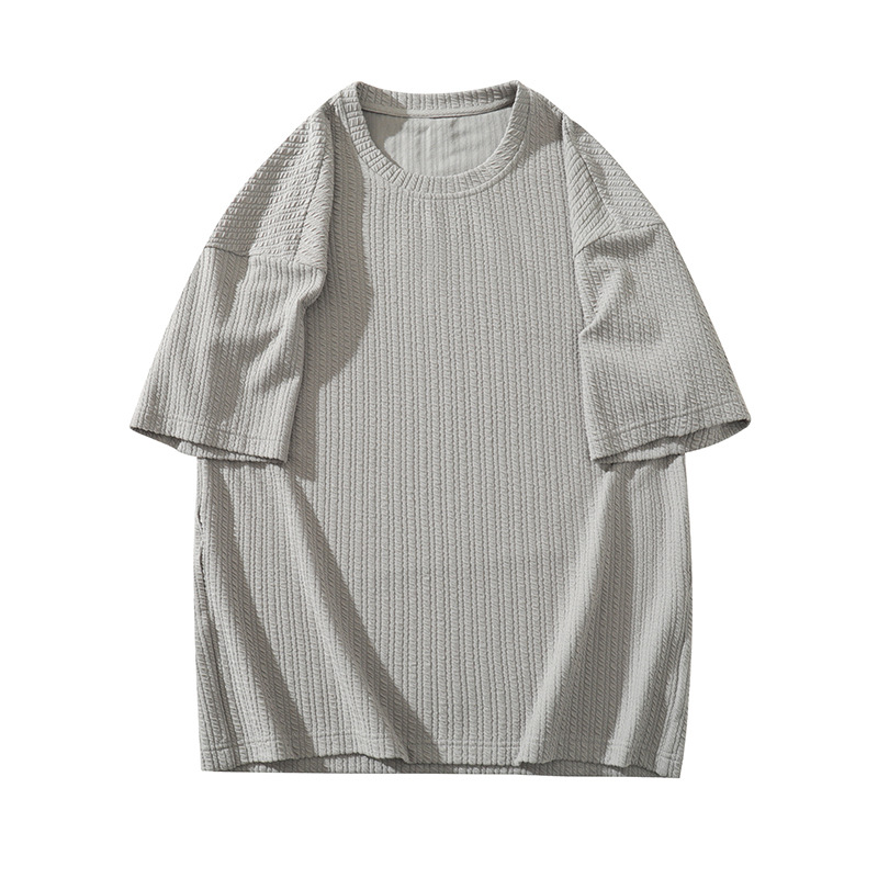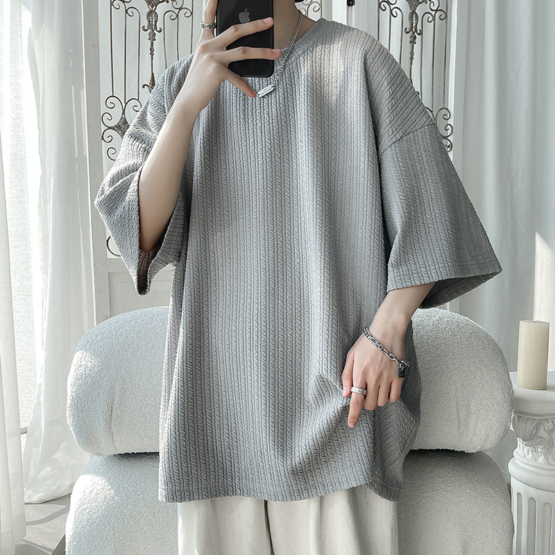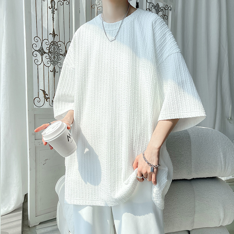 白色七分袖t恤男潮流感短袖夏季宽松大码男装小领口半袖
