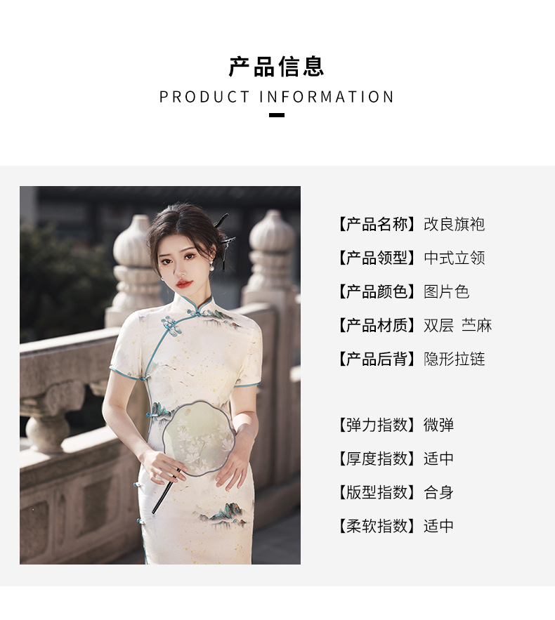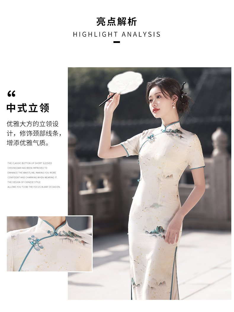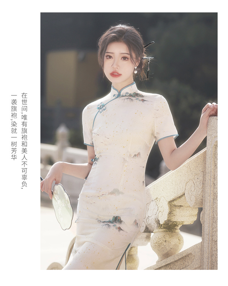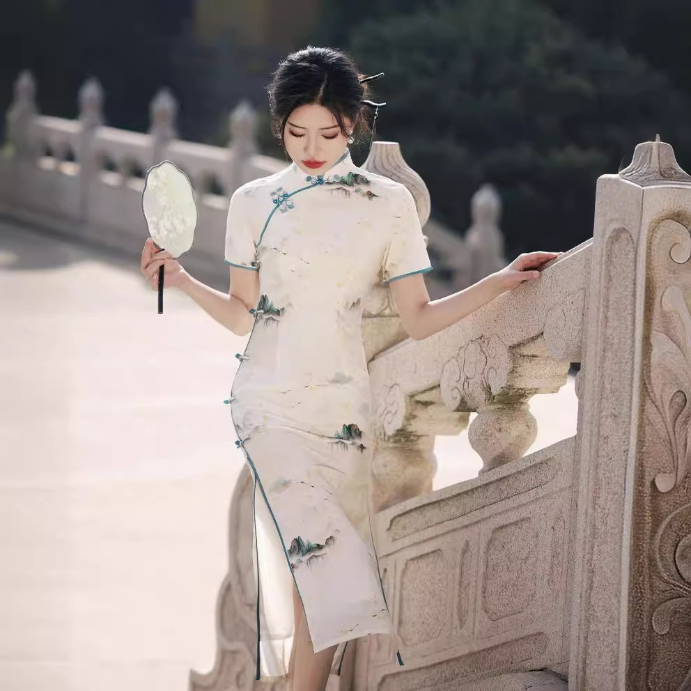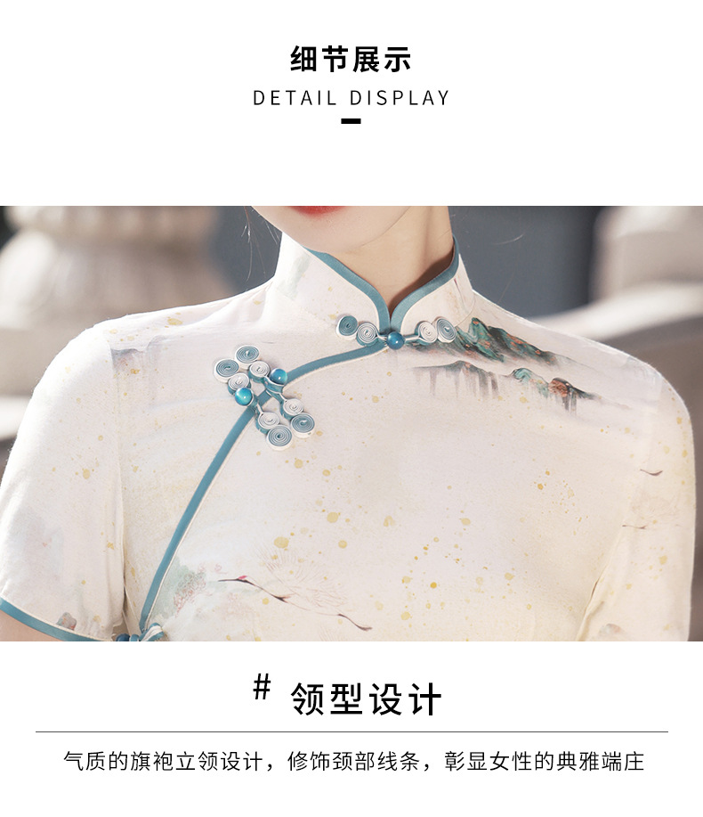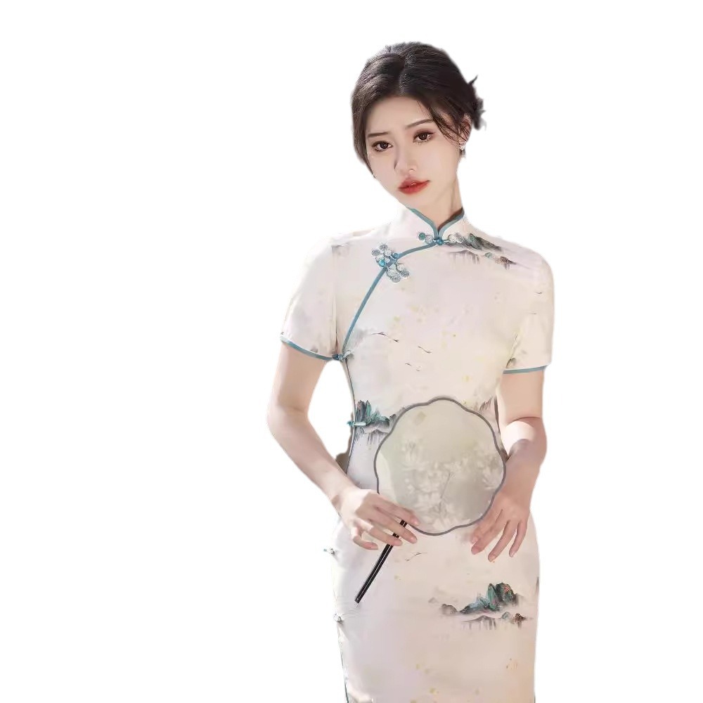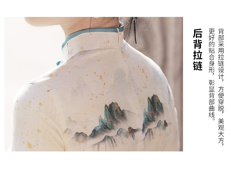 年轻款旗袍新款新中式民国风千里江山立领改良款旗袍