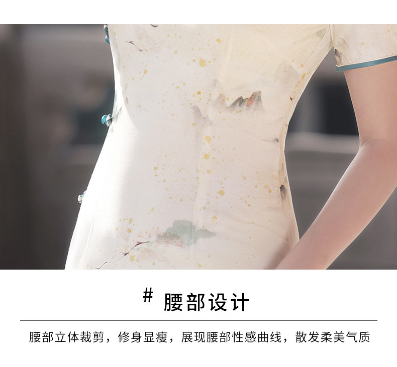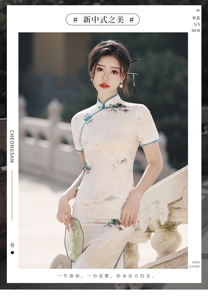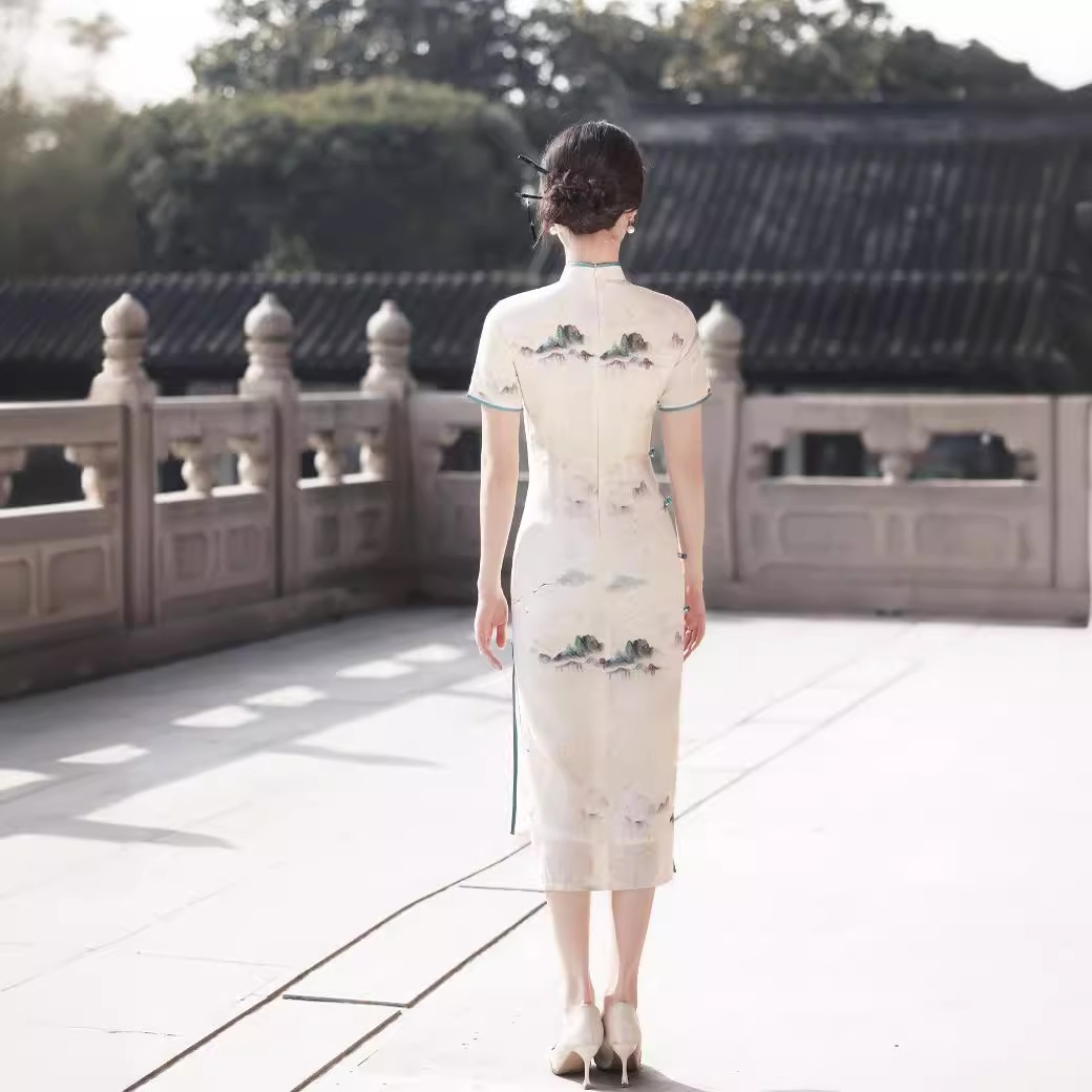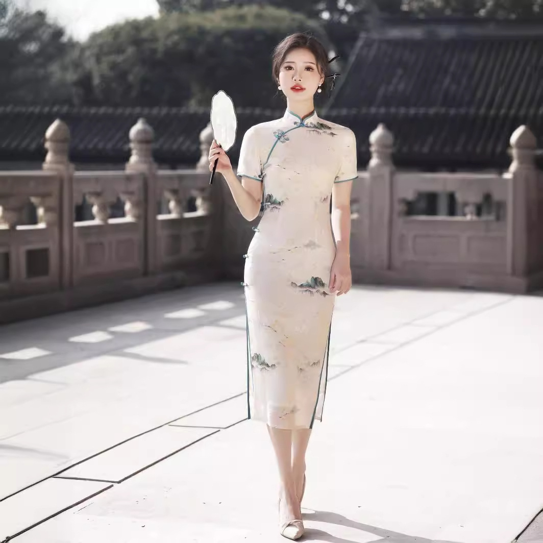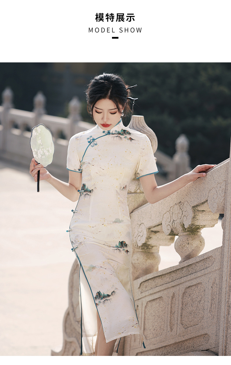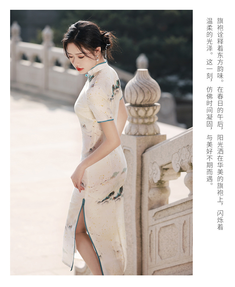 年轻款旗袍新款新中式民国风千里江山立领改良款旗袍