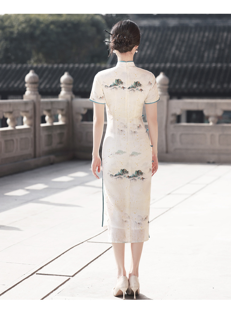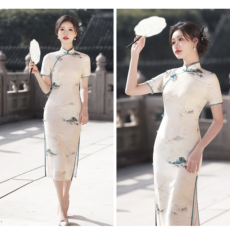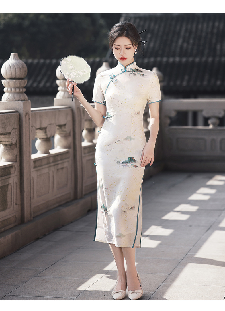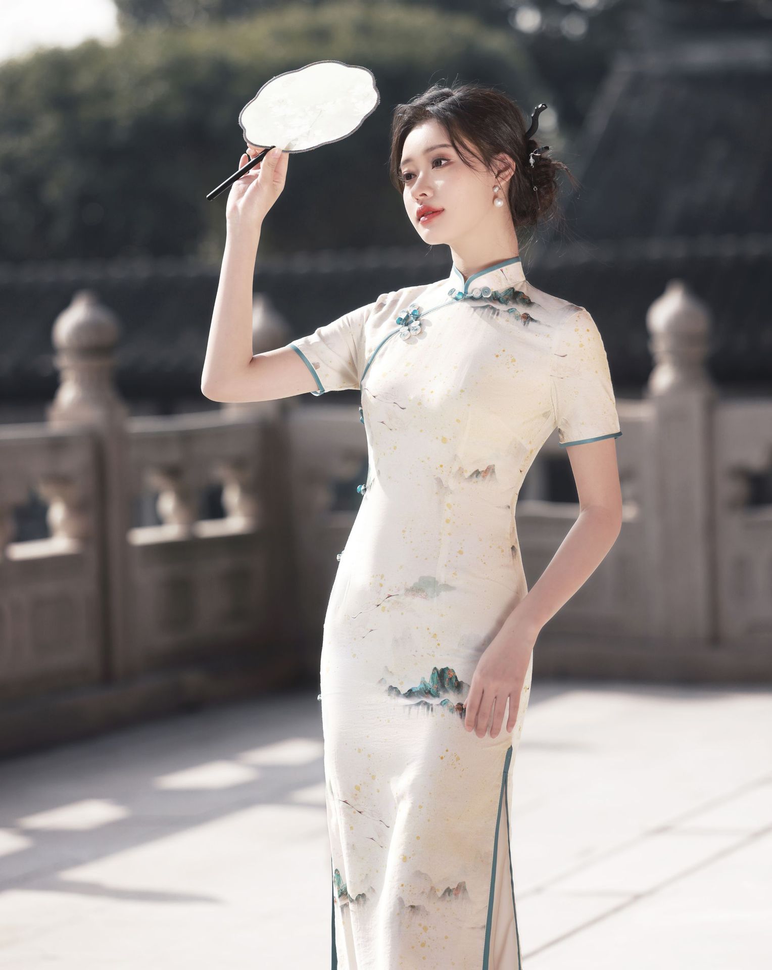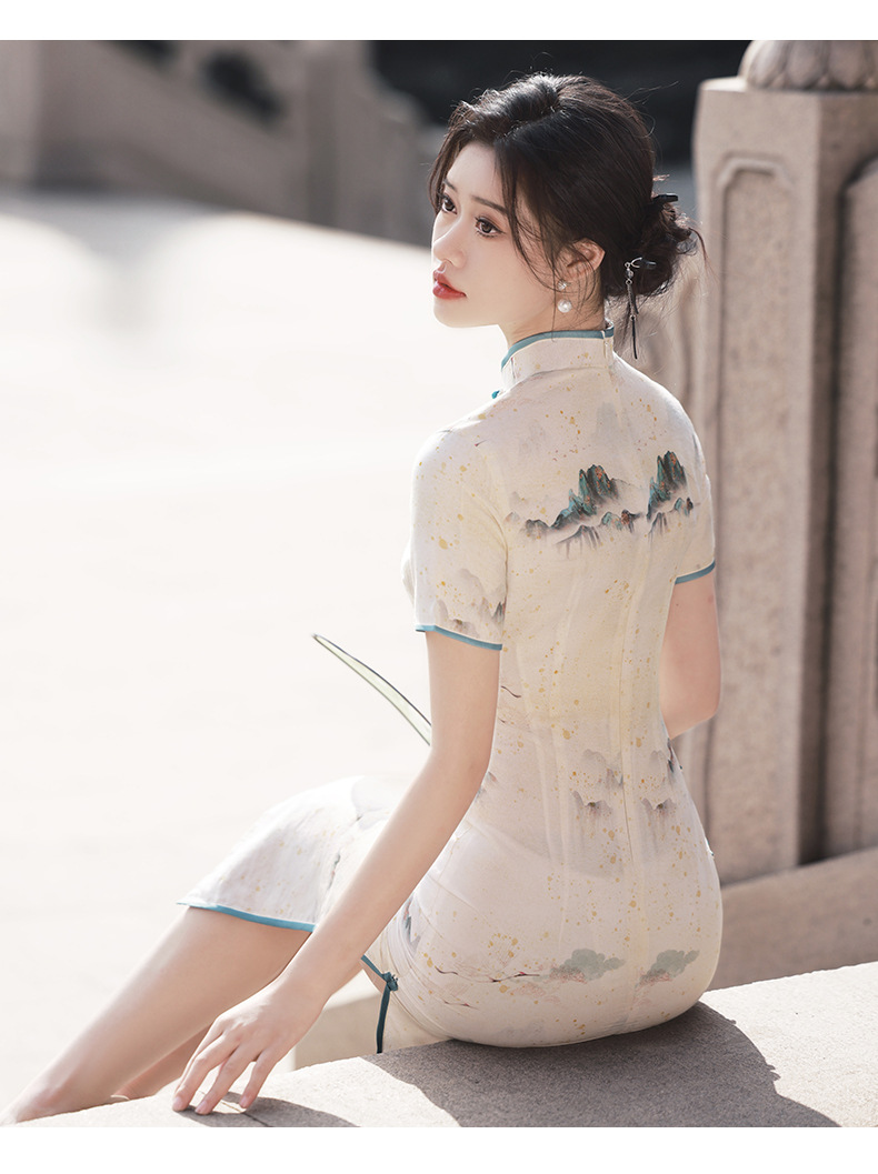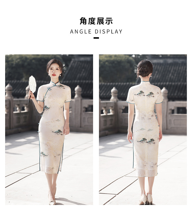 年轻款旗袍新款新中式民国风千里江山立领改良款旗袍