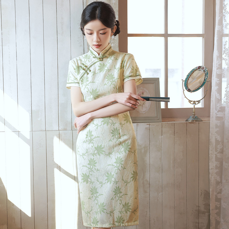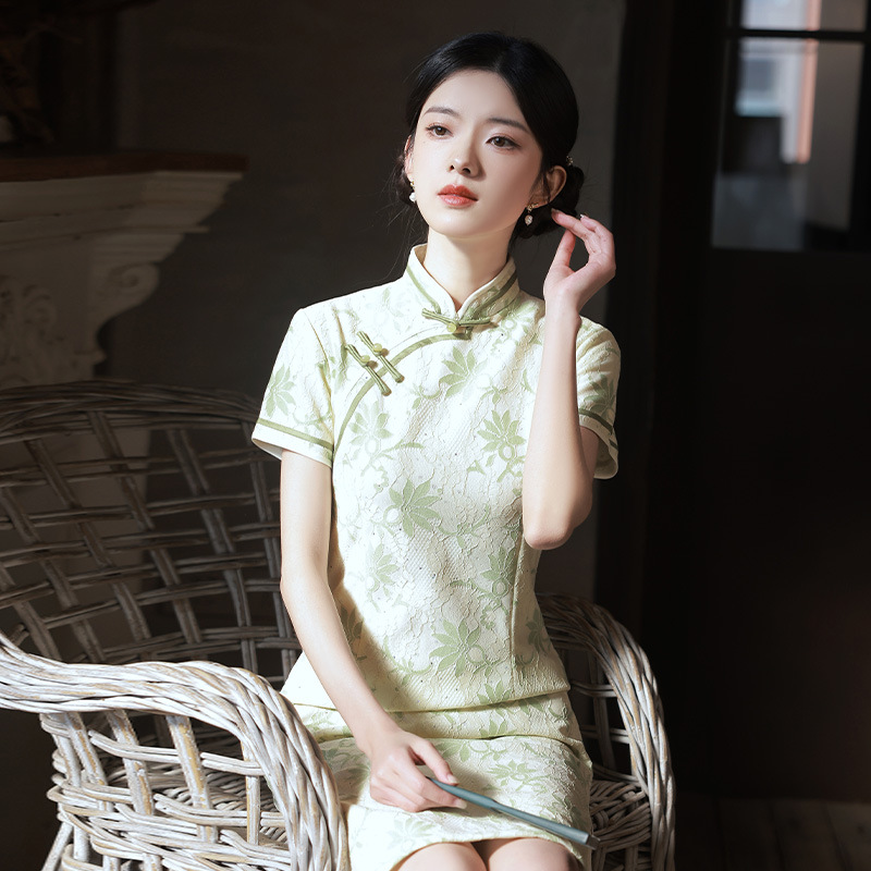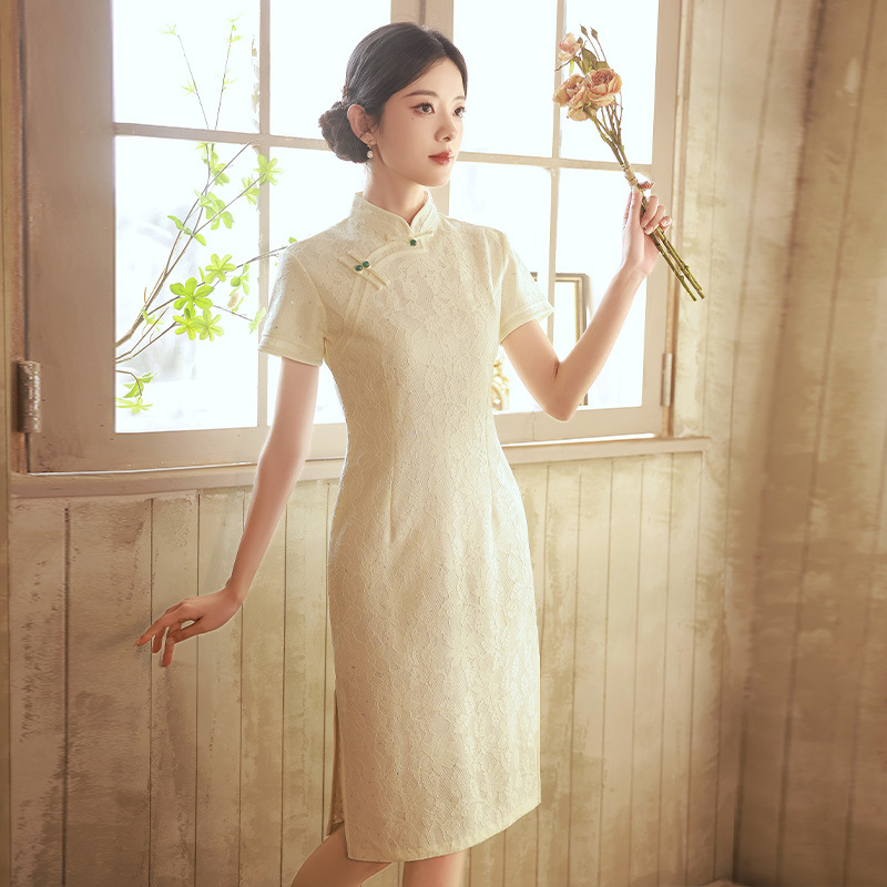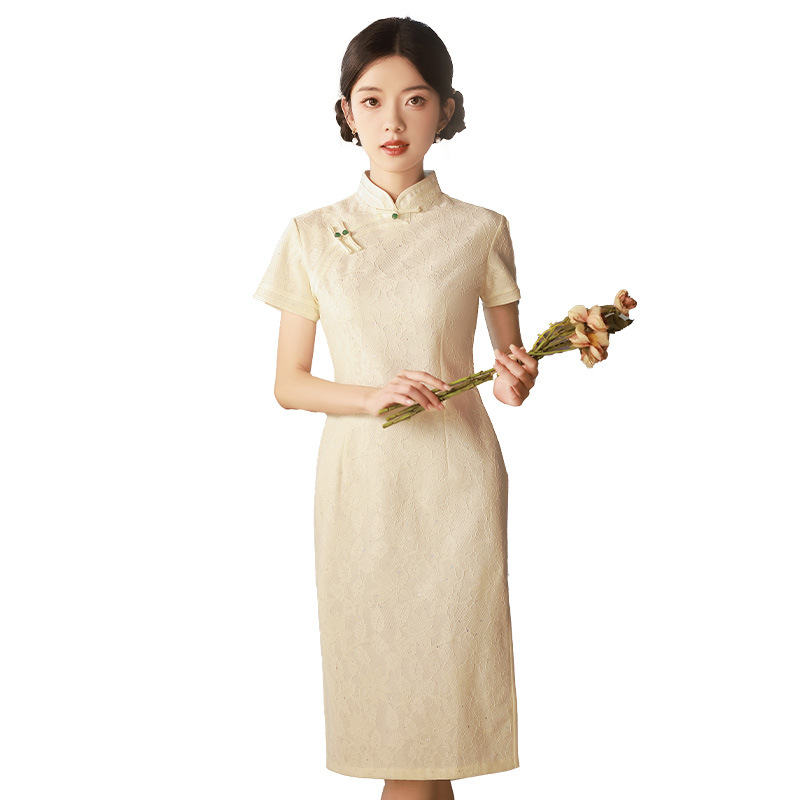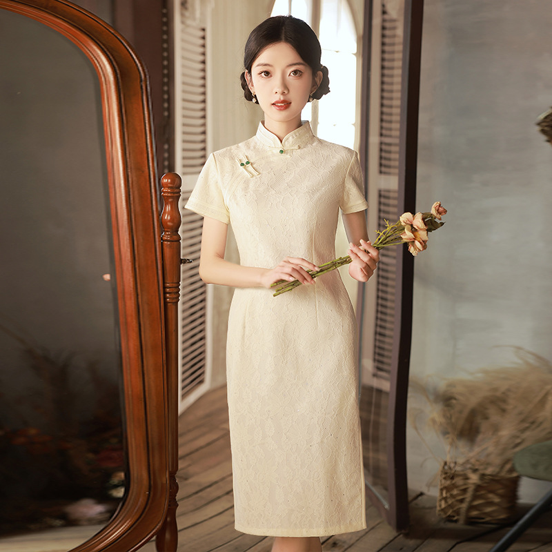 新中式改良蕾丝旗袍新款年轻款复古高端气质连衣裙