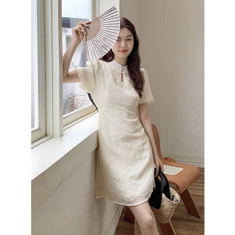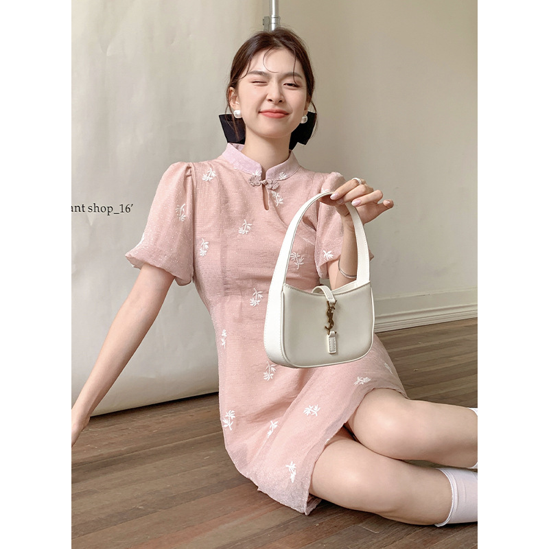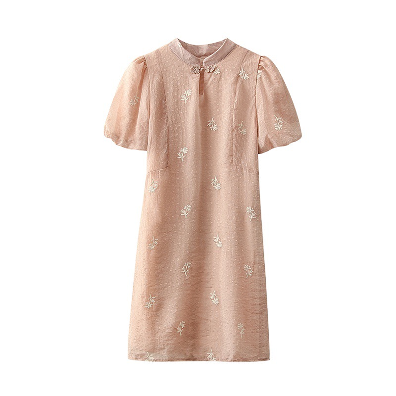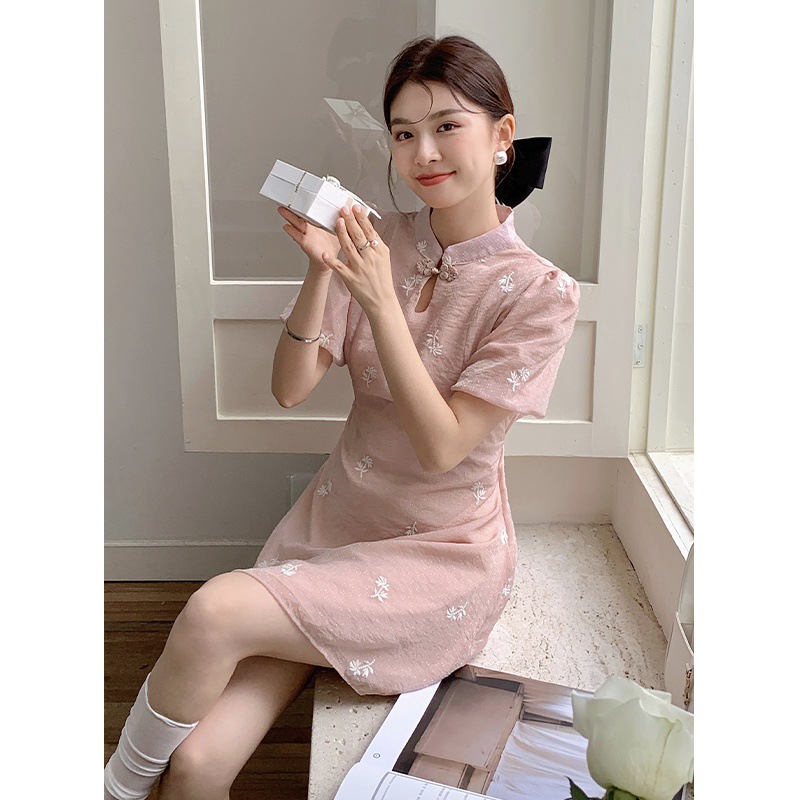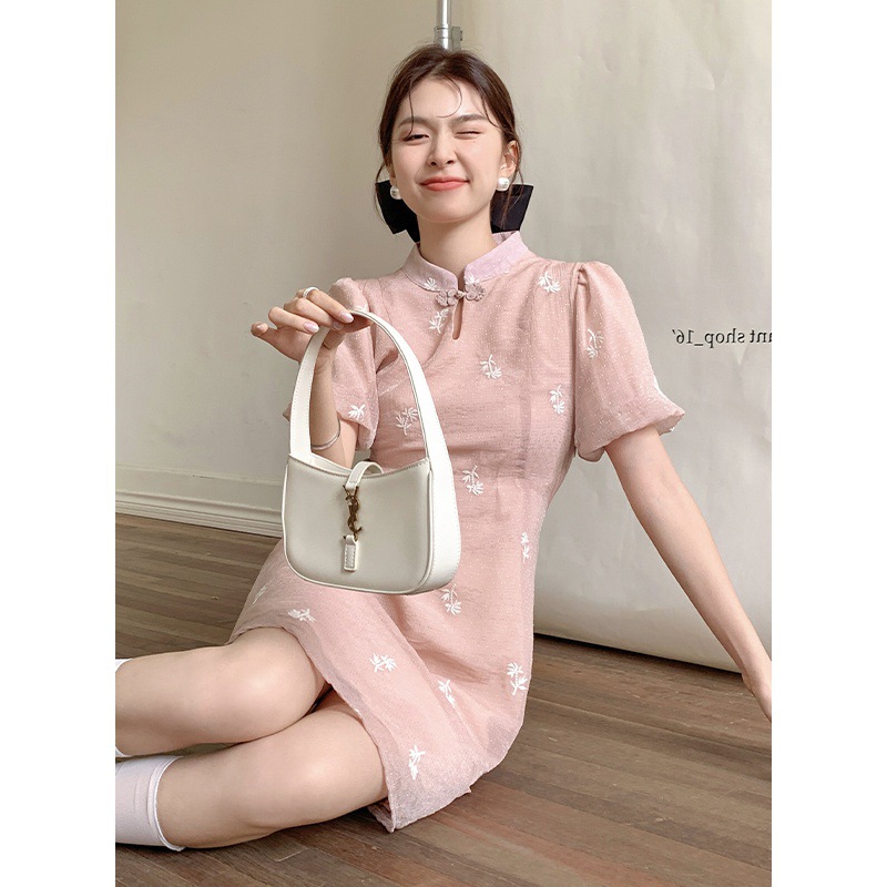 小个子夏季新中式中国风改良版旗袍系带显瘦网纱刺绣连衣裙