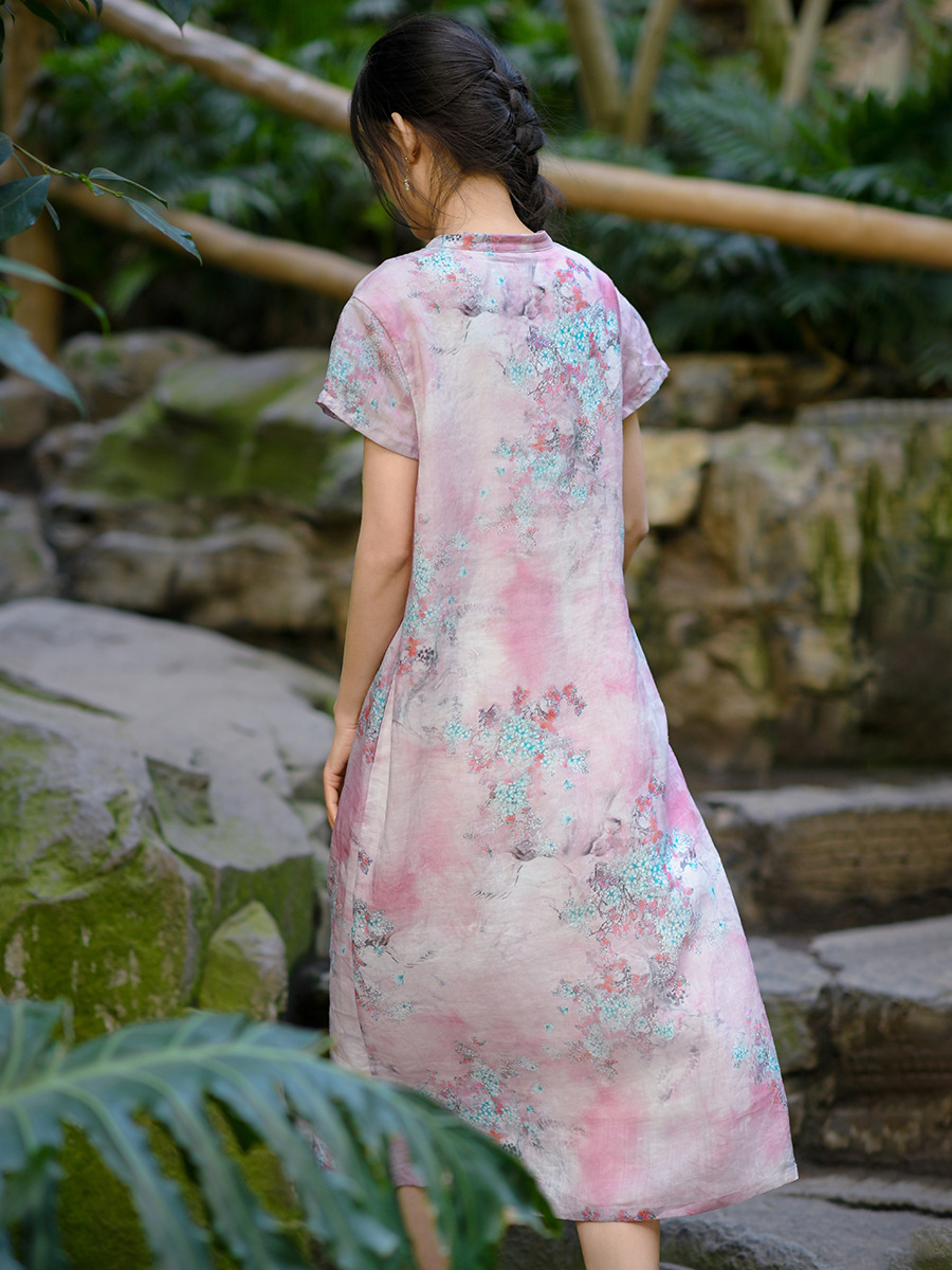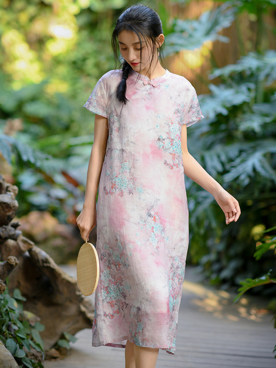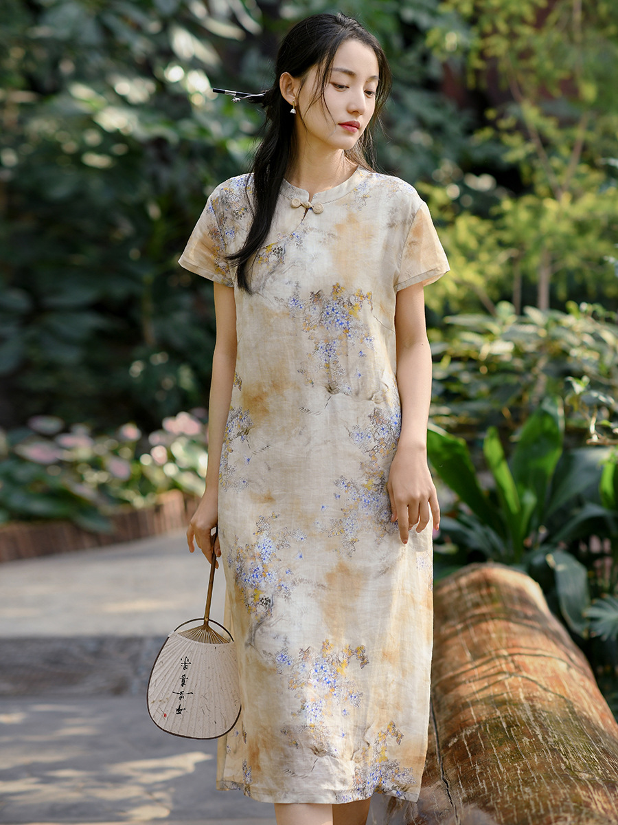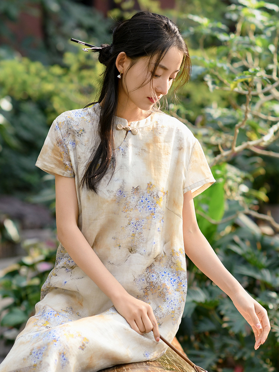 新中式女装夏季新款复古改良旗袍中国风短袖连衣裙苎麻茶服