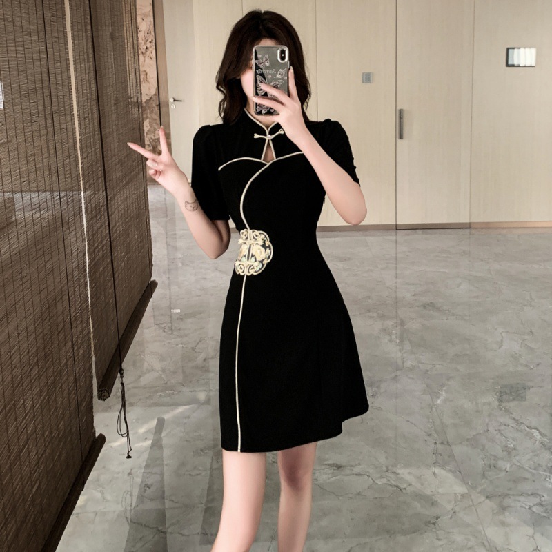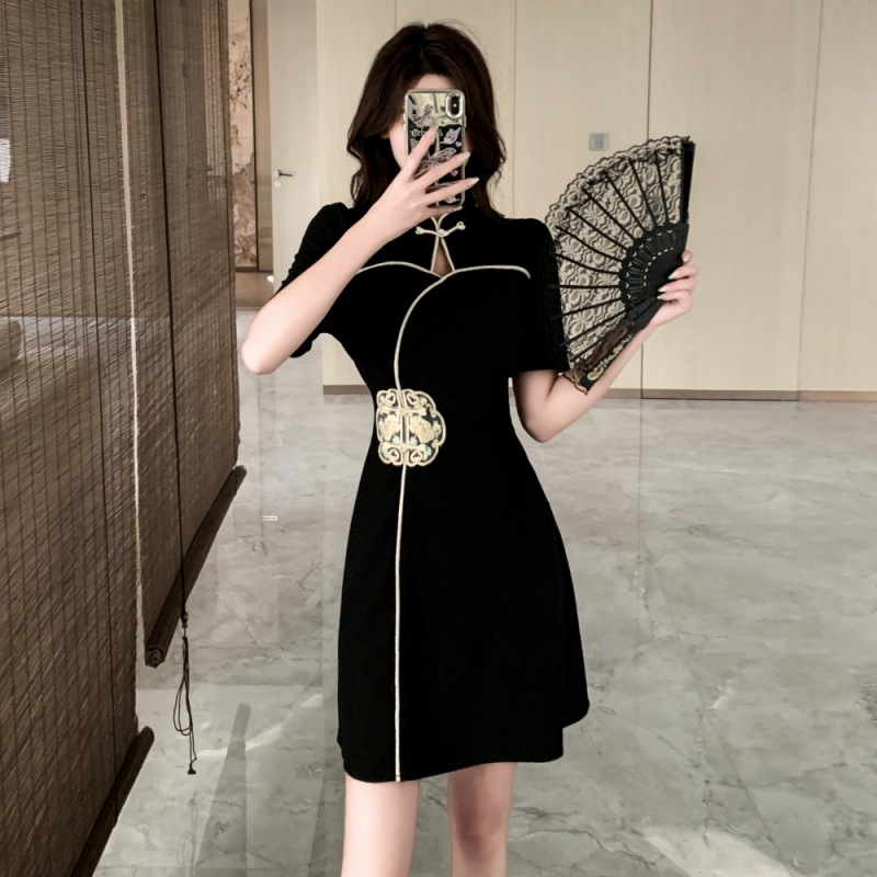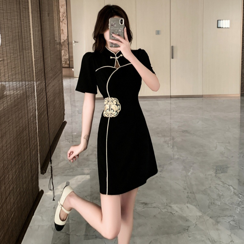 夏季新款新中式国风改良旗袍设计感时尚修身显瘦短款连衣裙女