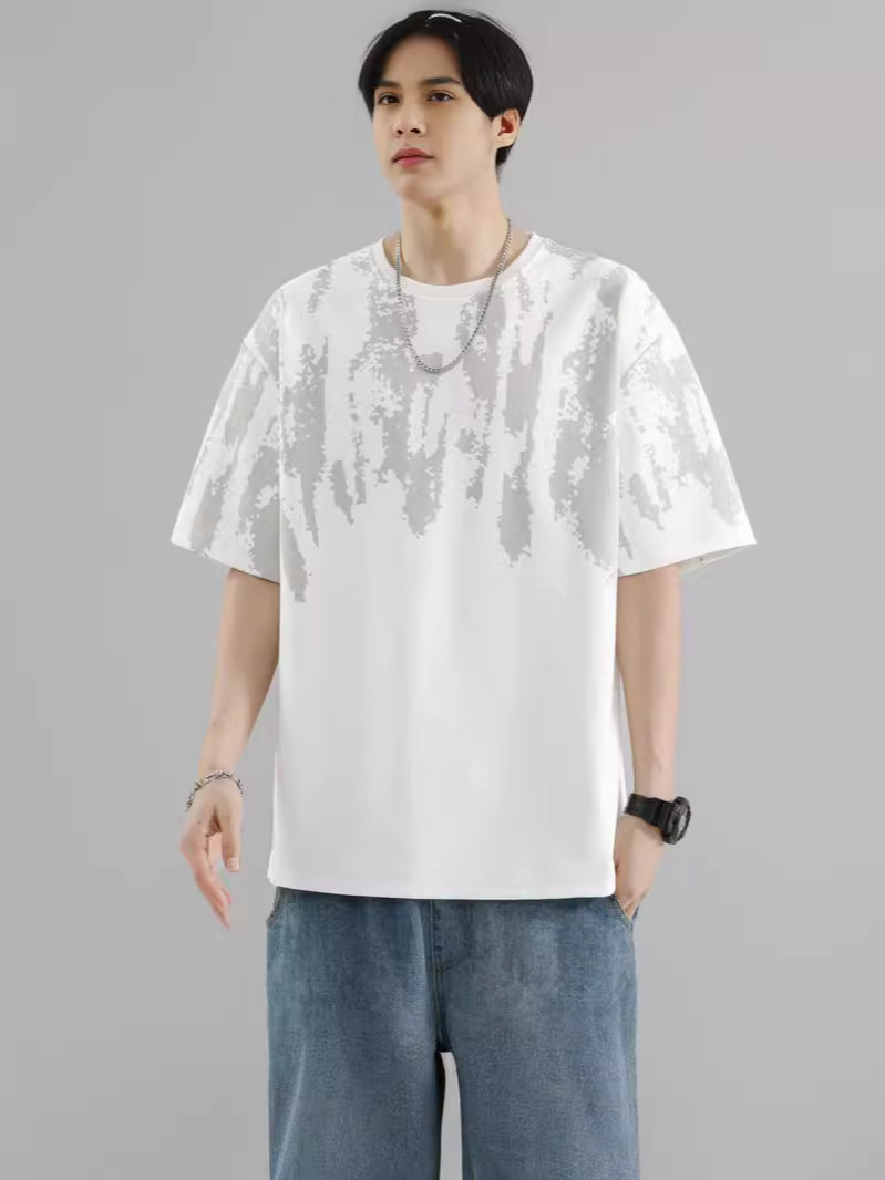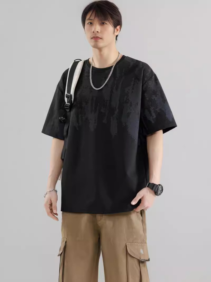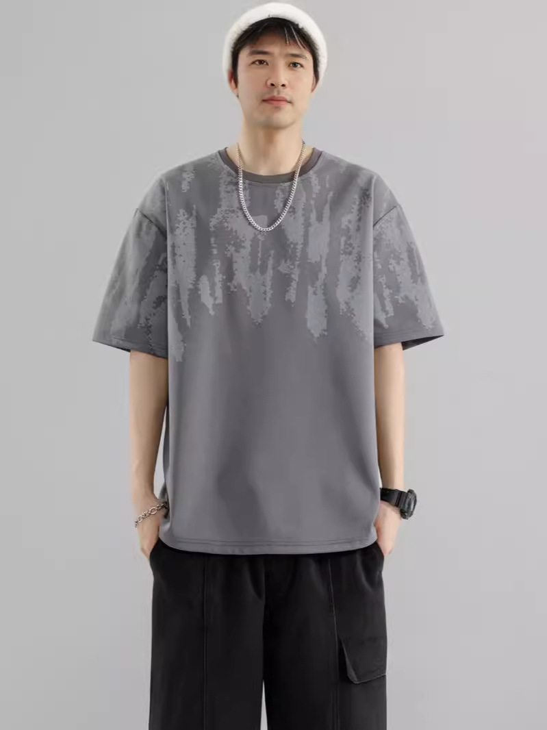 美式t恤男大码夏季新款圆领宽松打底衫胖子加肥加大潮牌短袖上衣