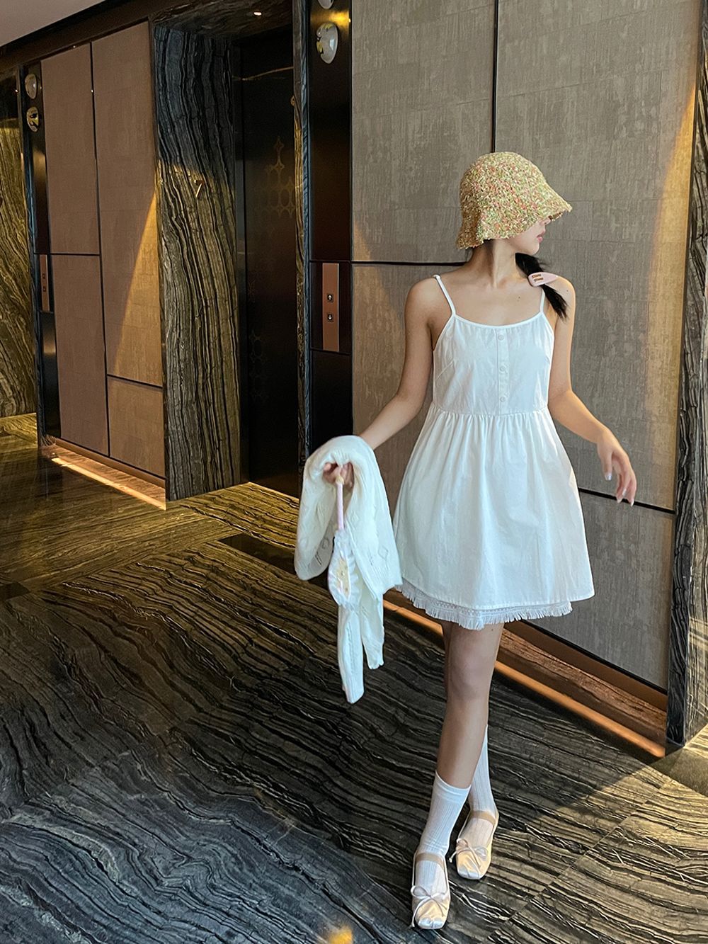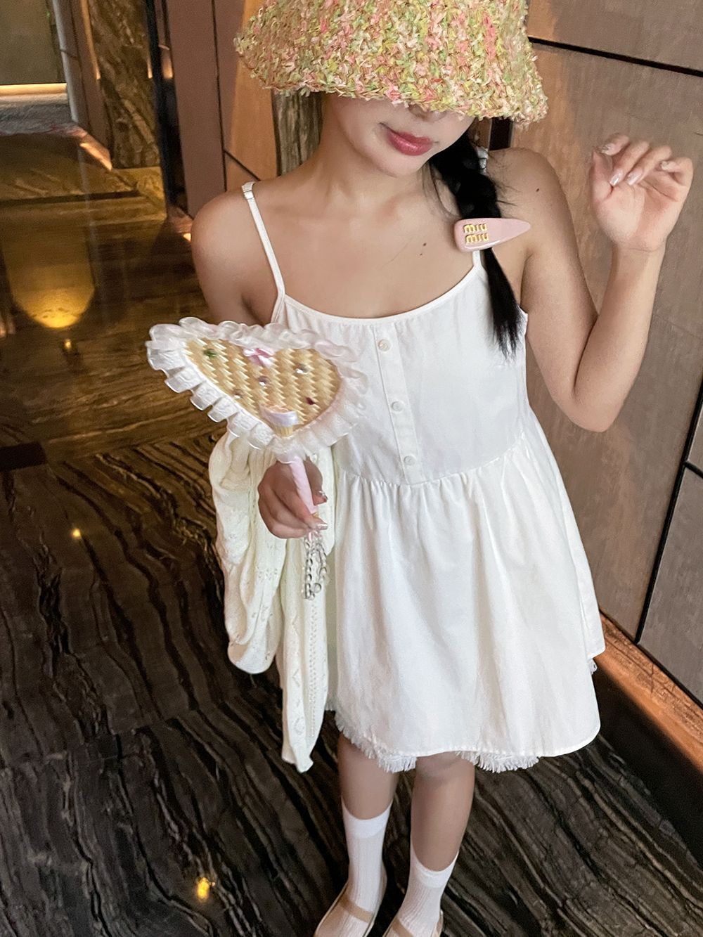 甜美纯欲流苏吊带连衣裙夏季韩系宽松简约短裙