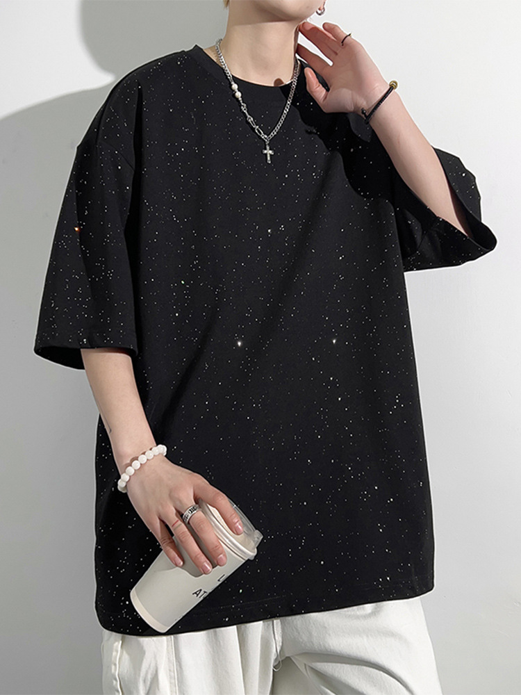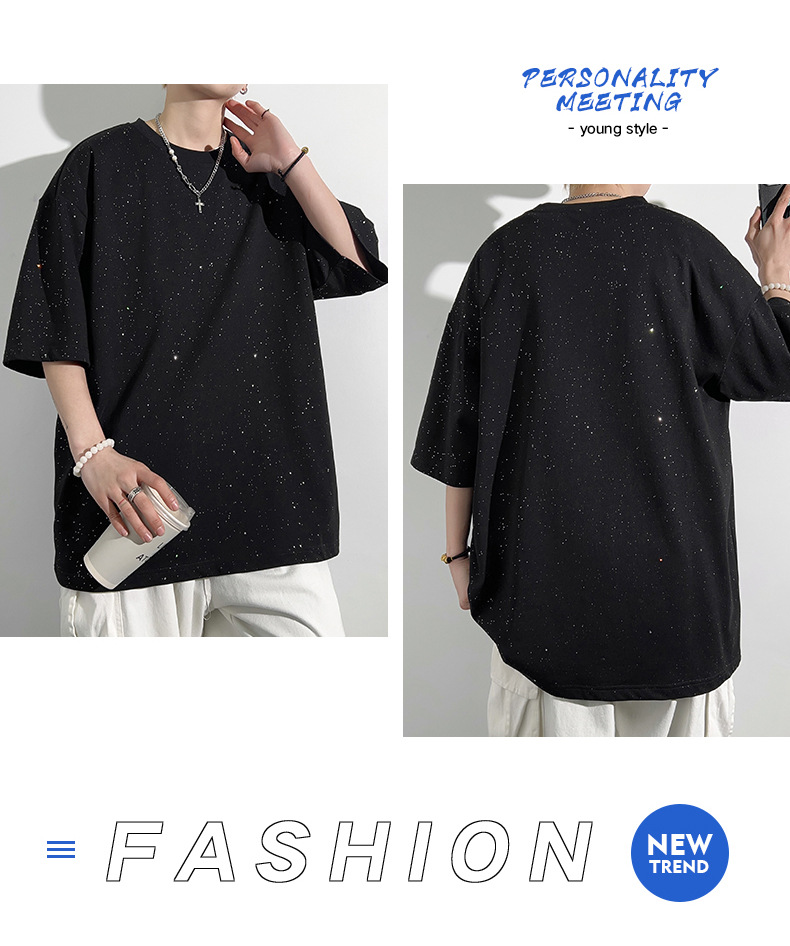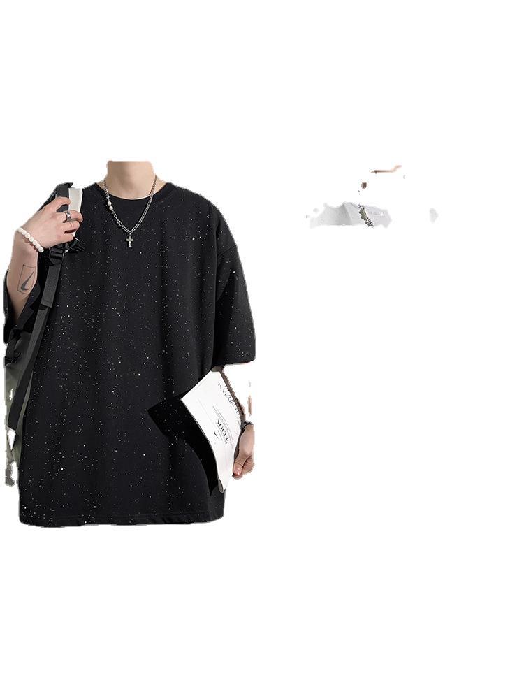 新款满天星短袖t恤男士夏季黑色体恤半袖宽松男生上衣服