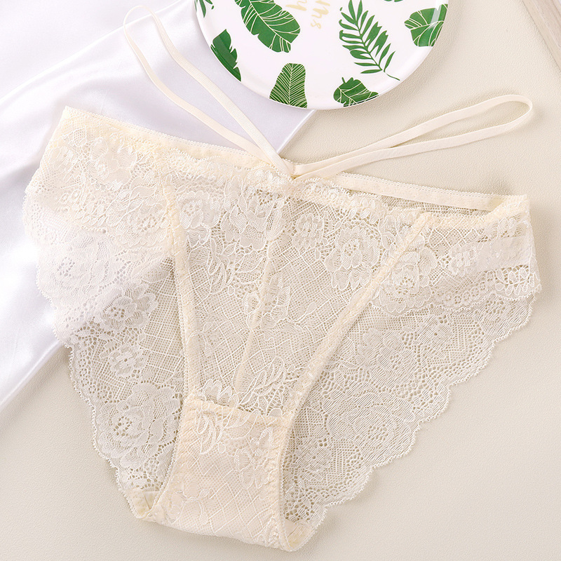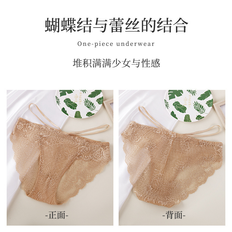 蕾丝内裤女性感纯欲纯色无痕蝴蝶绑带三角裤女少女内裤