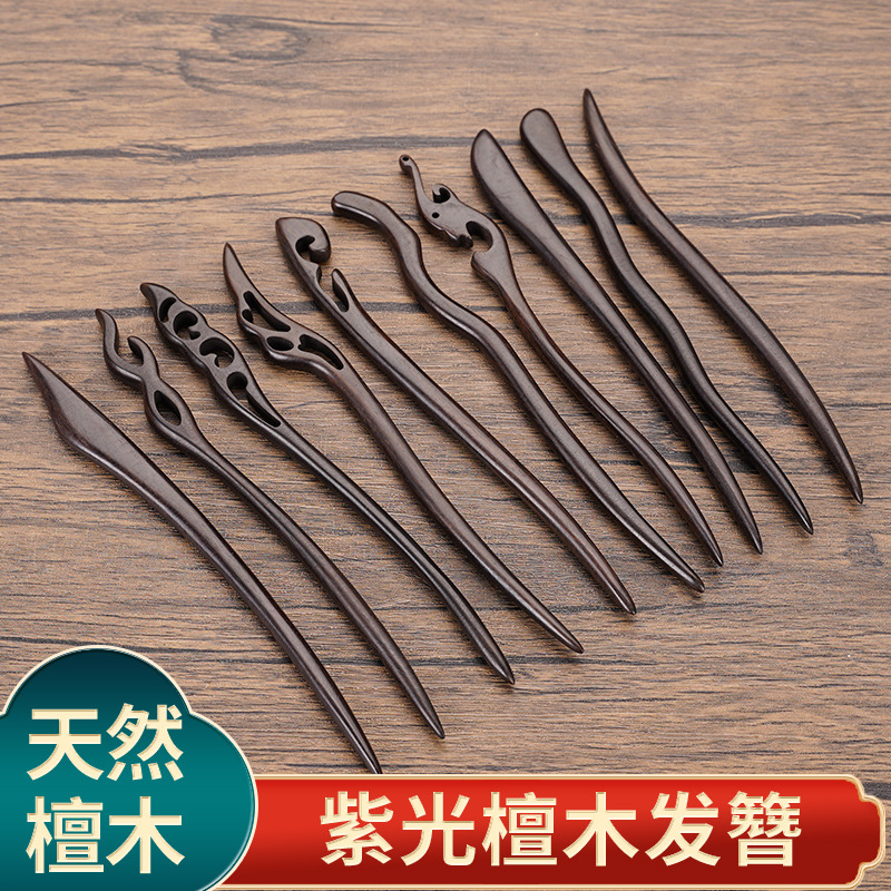优质感檀木簪子古典汉服发钗盘发木发簪紫光檀黑檀木簪子