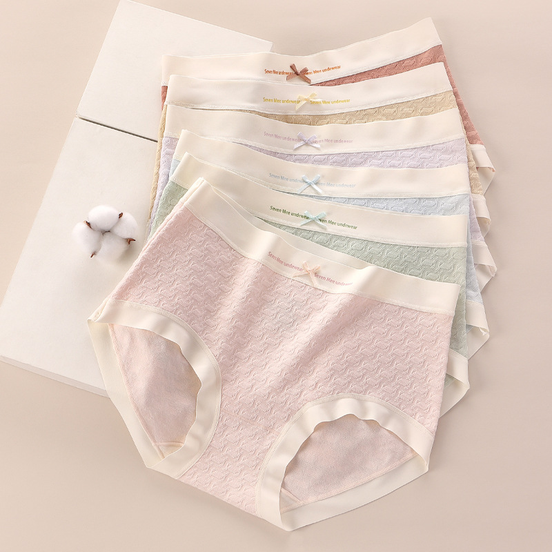内裤女士纯棉提花5A抗菌蚕丝裆中腰女生内裤