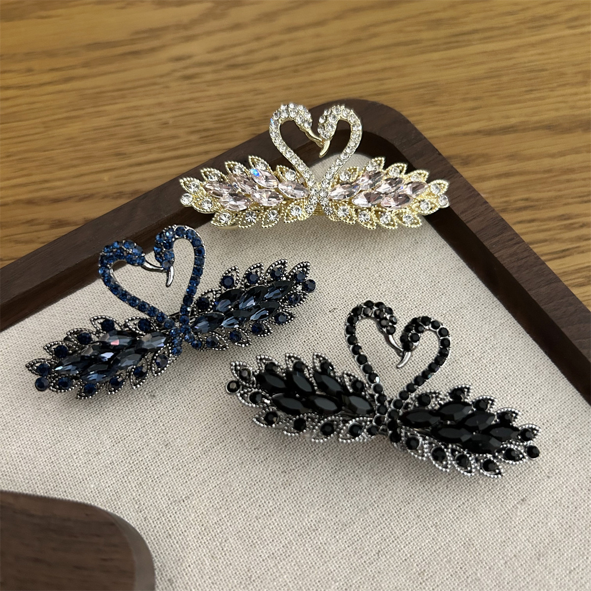 高级感水钻天鹅弹簧夹发饰后脑勺半扎发夹横夹弹簧夹韩国发饰