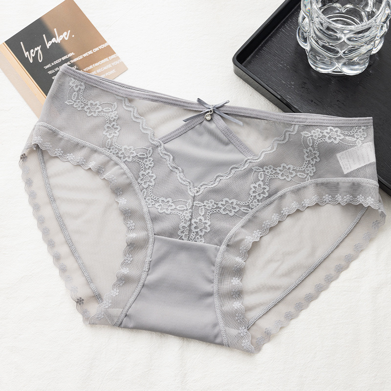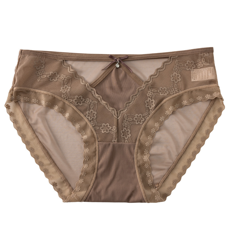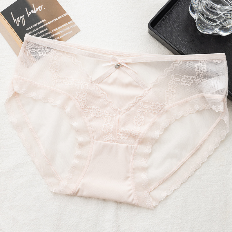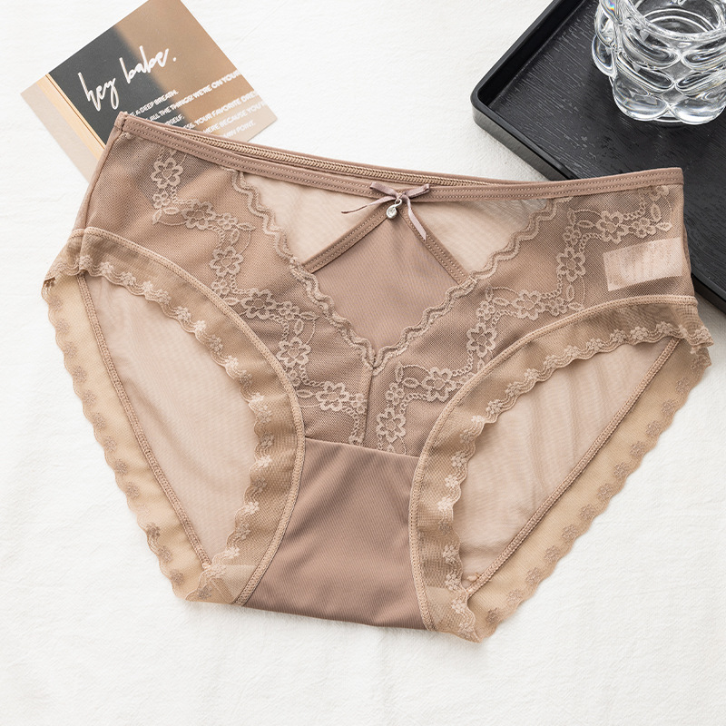 美拉德网纱蕾丝内裤性感镂空绣花设计轻薄裸感桑蚕丝裆女士三角裤