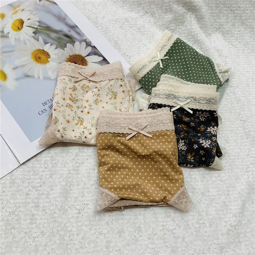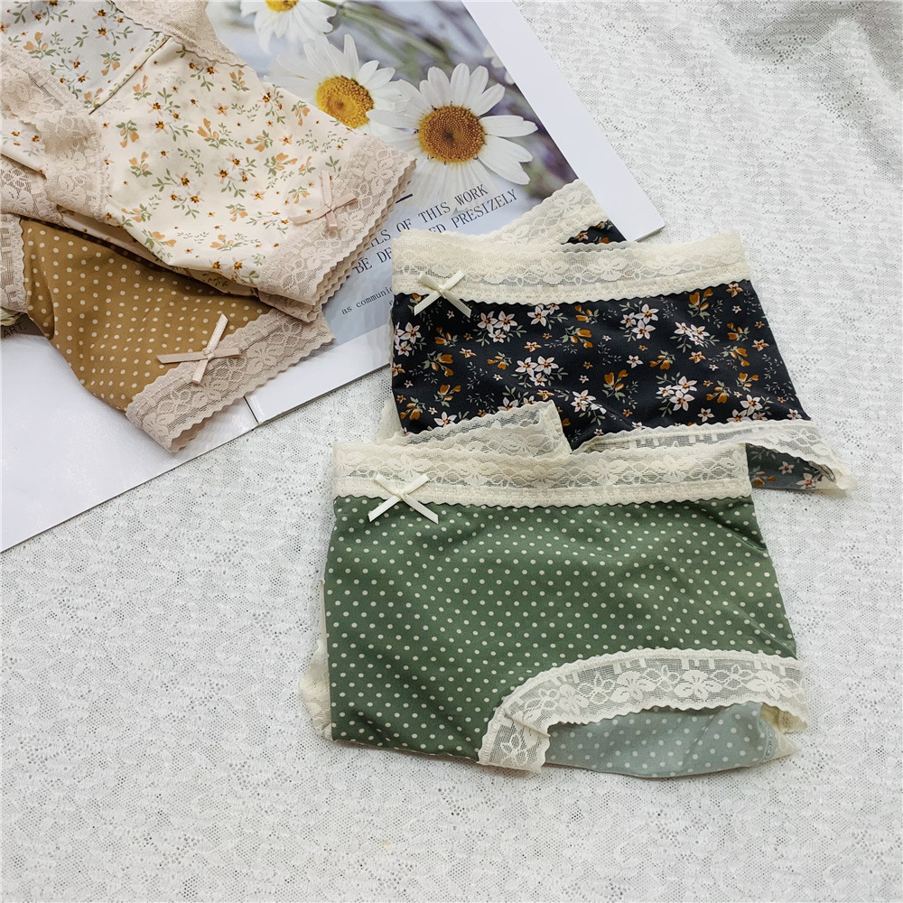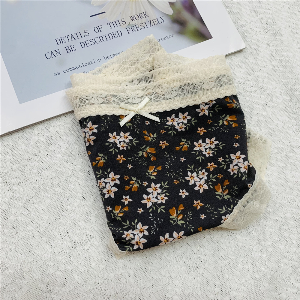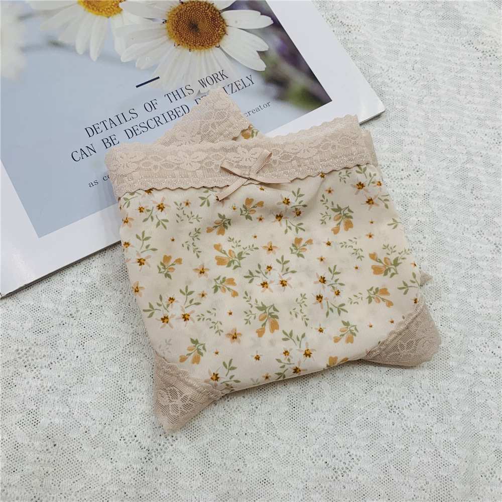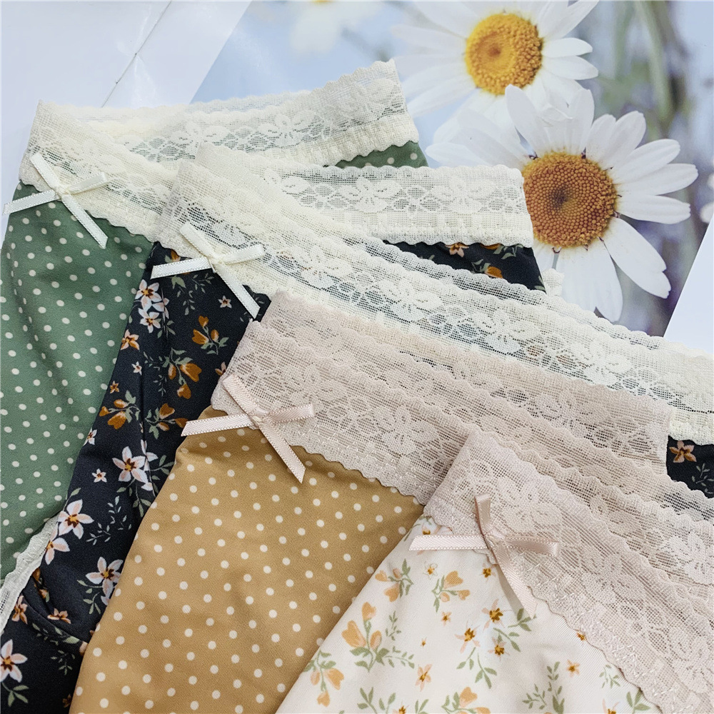 新款内裤碎花波点冰丝蕾丝边石墨烯底裆透气内裤低腰女士内裤
