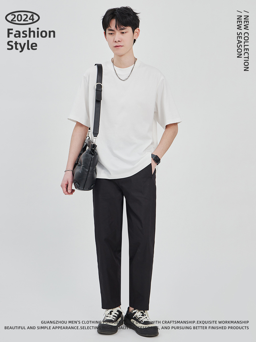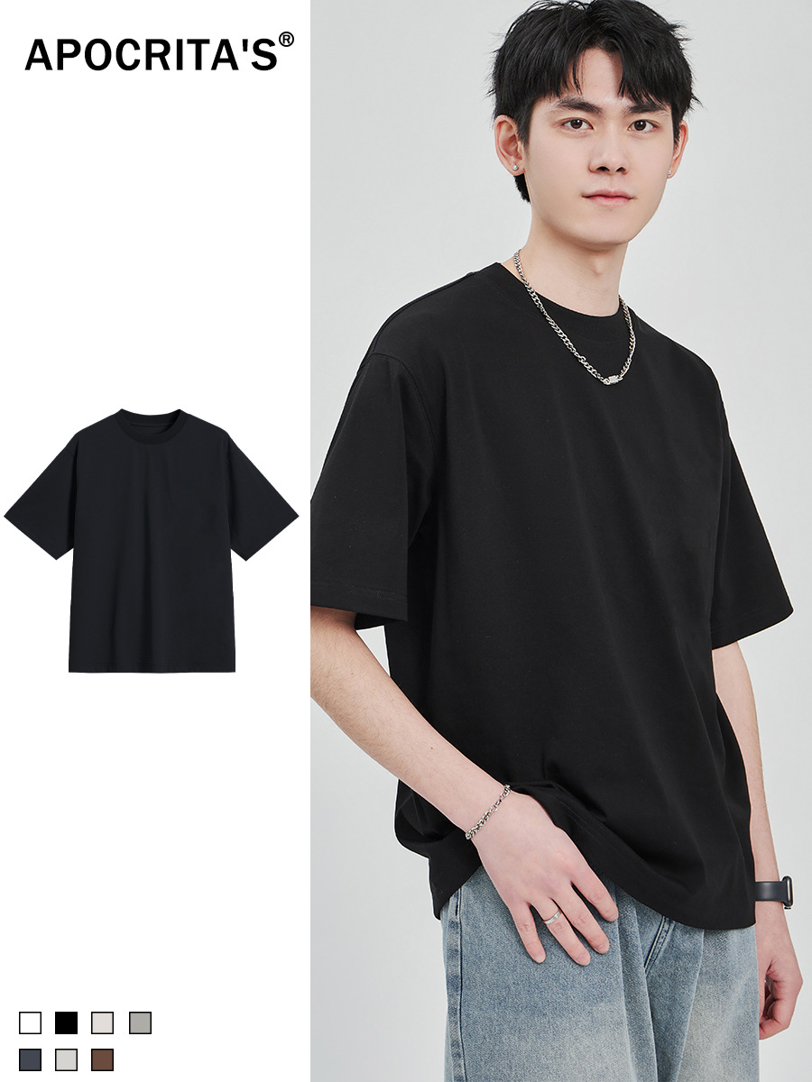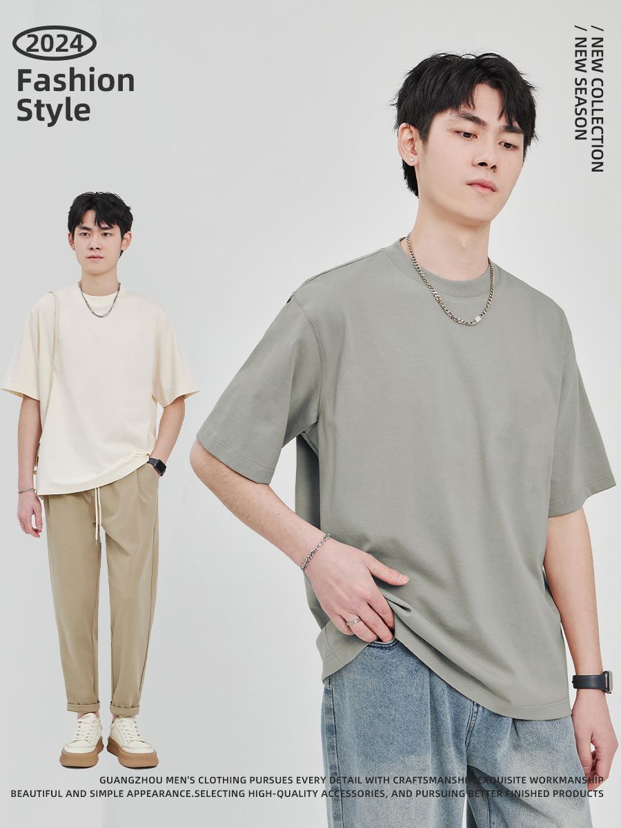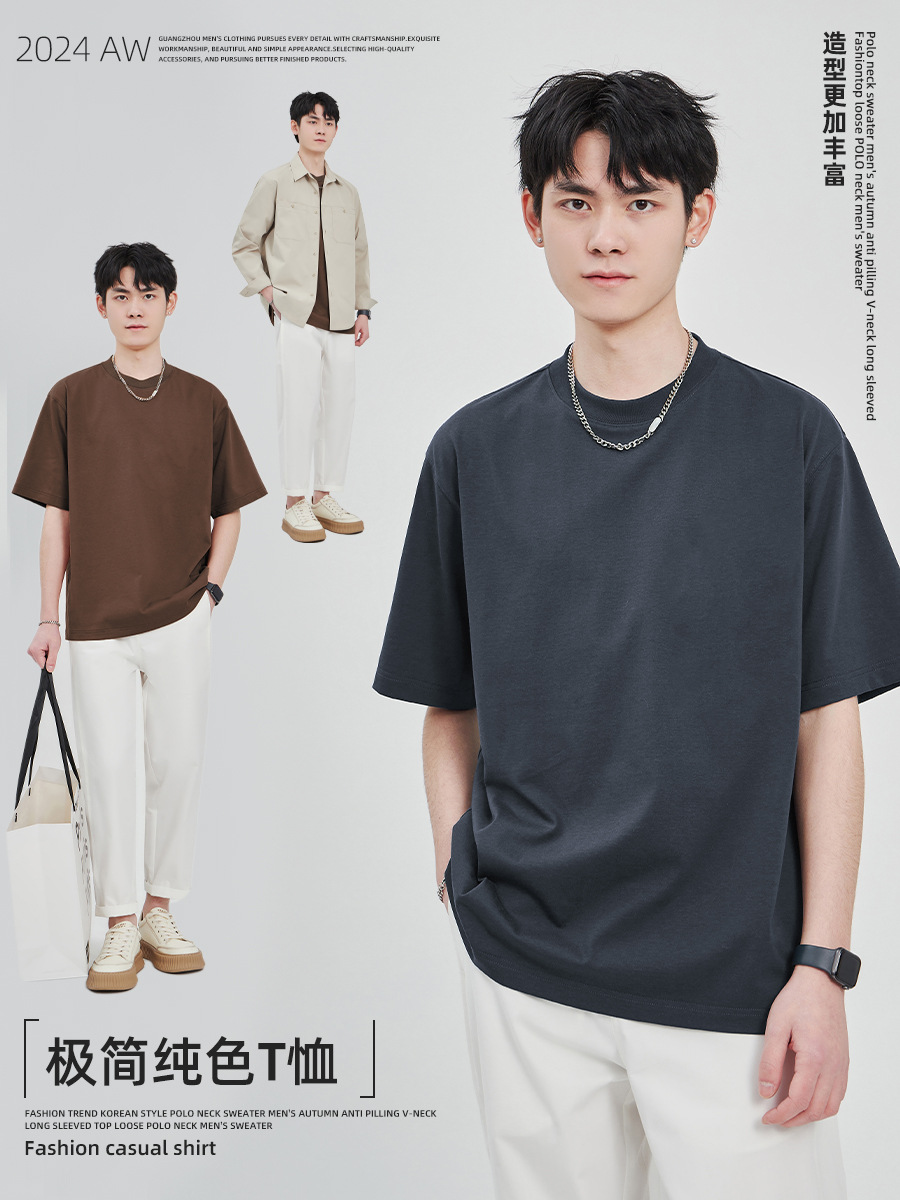 春夏新款潮流圆领速干体恤 纯色宽松休闲短袖T恤男