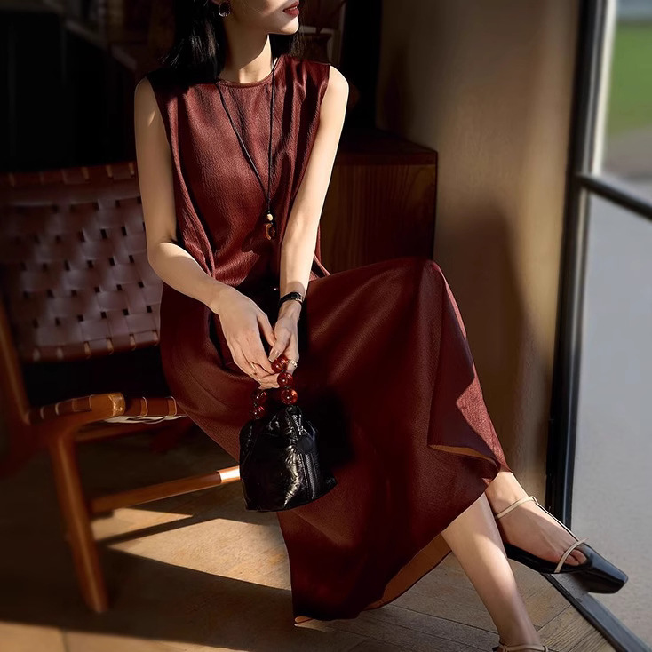 店主强烈推荐~新款气质红收腰无袖连衣裙女夏季吸睛垂顺有型裙子