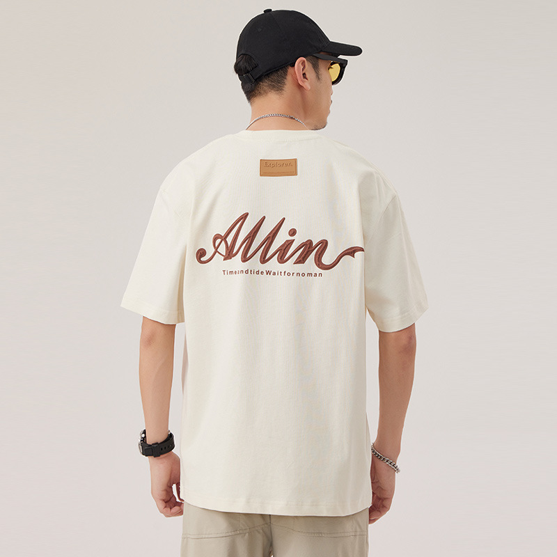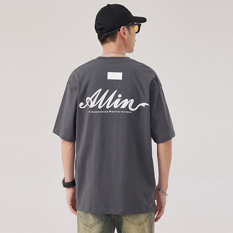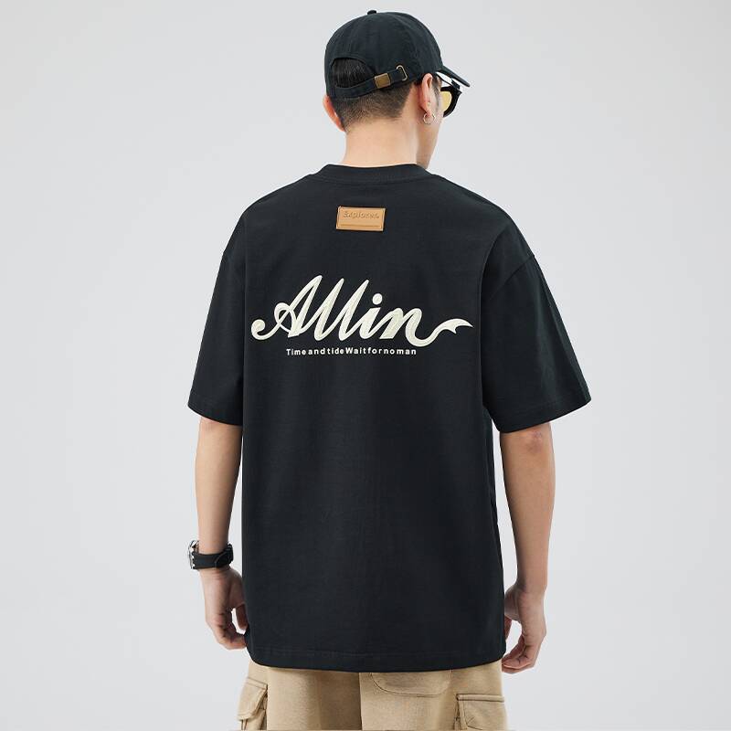 夏季新款重磅纯棉短袖t恤男圆领潮牌字母立体印花百搭打底半袖潮