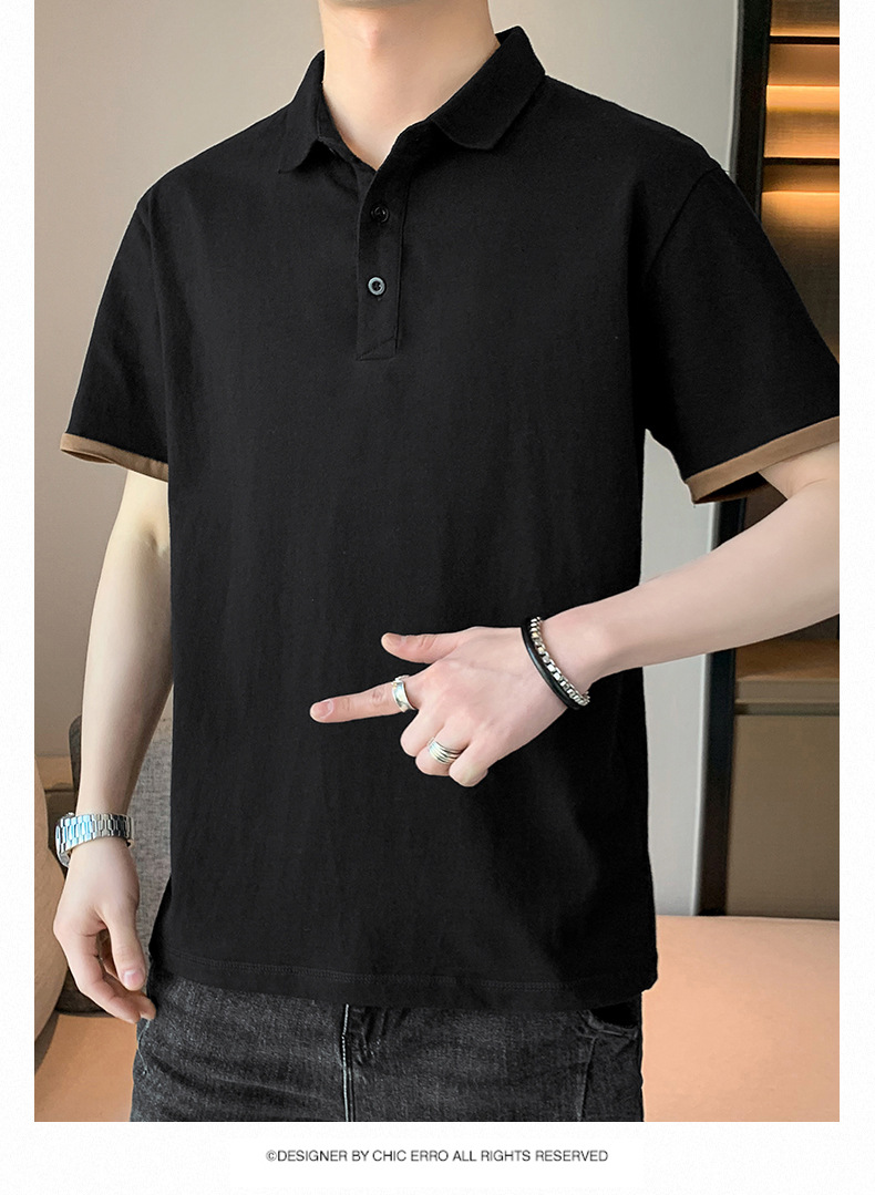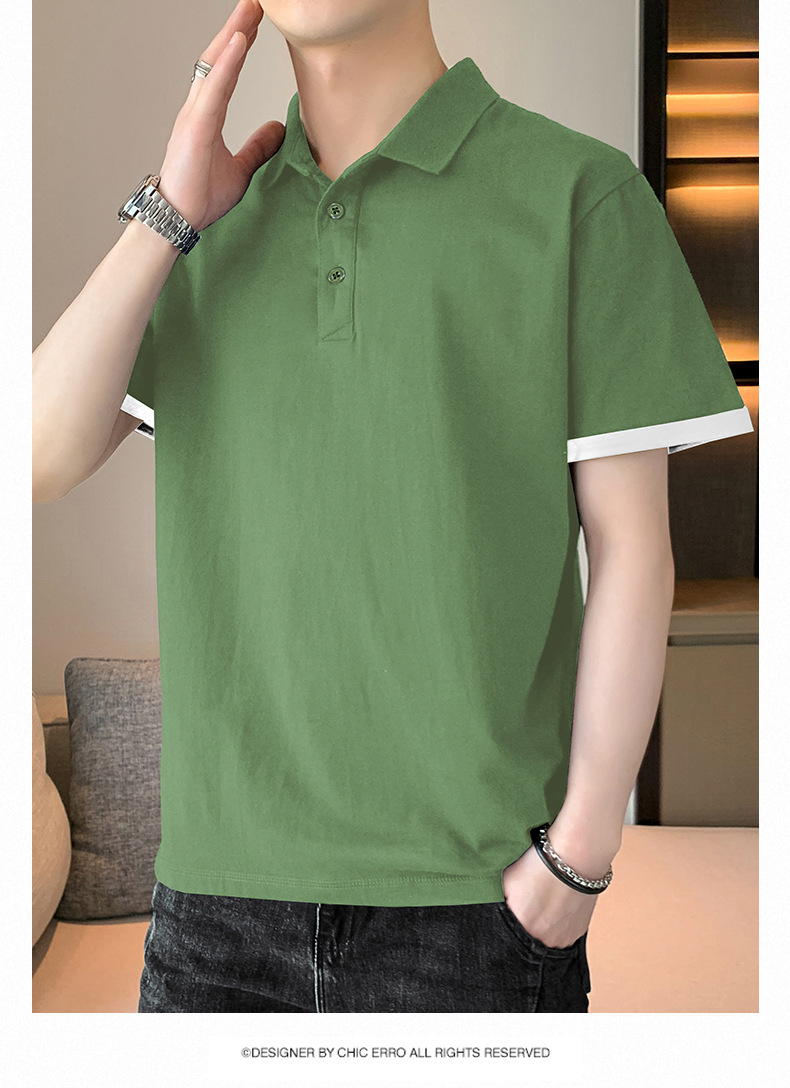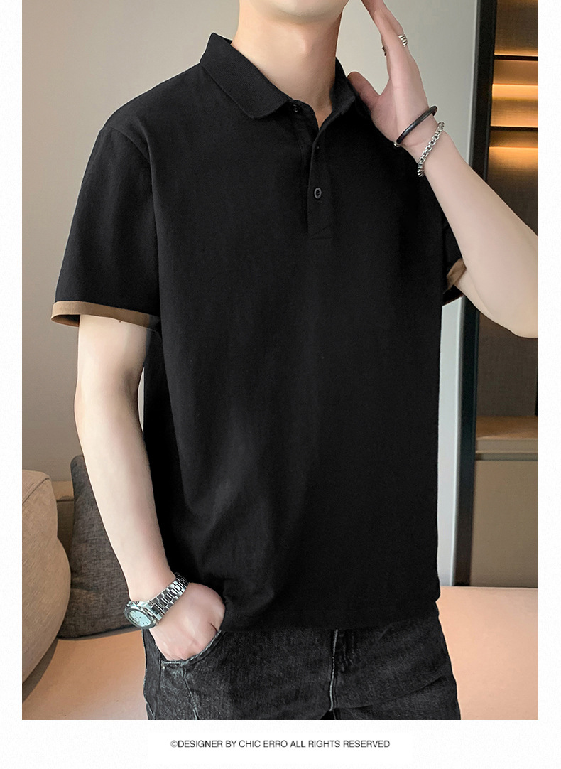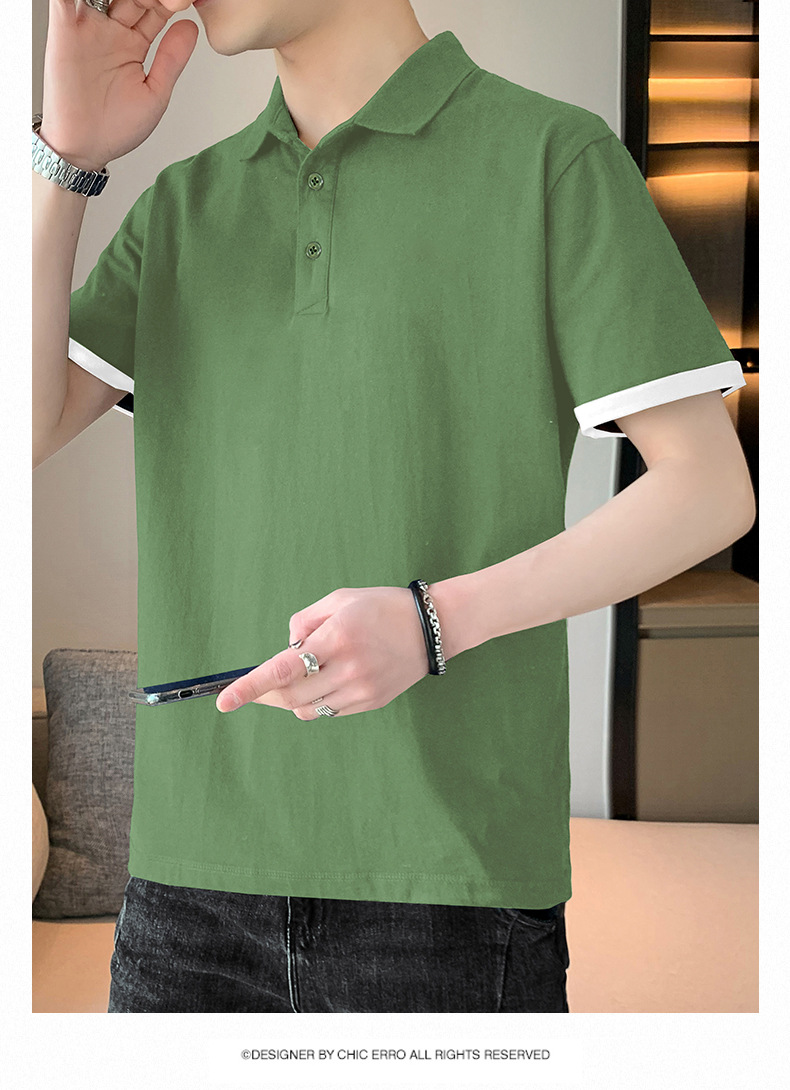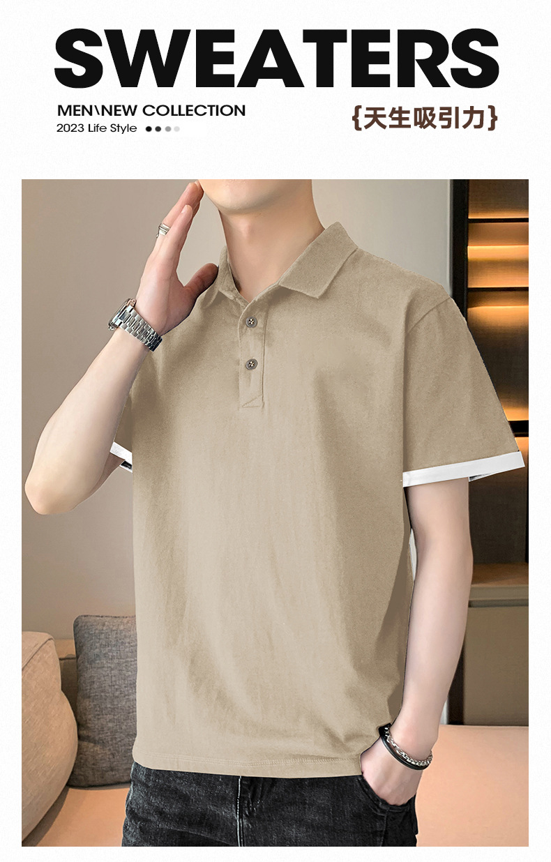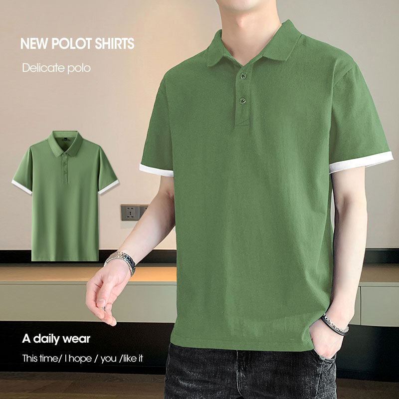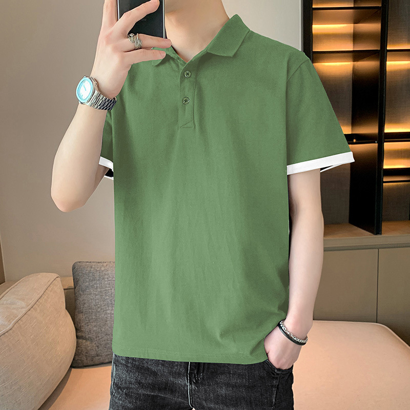 夏季纯色短袖POLO衫男公版韩版光版翻领T恤大码珠地棉冰丝男装t恤