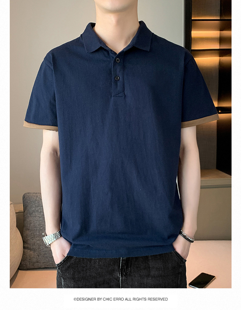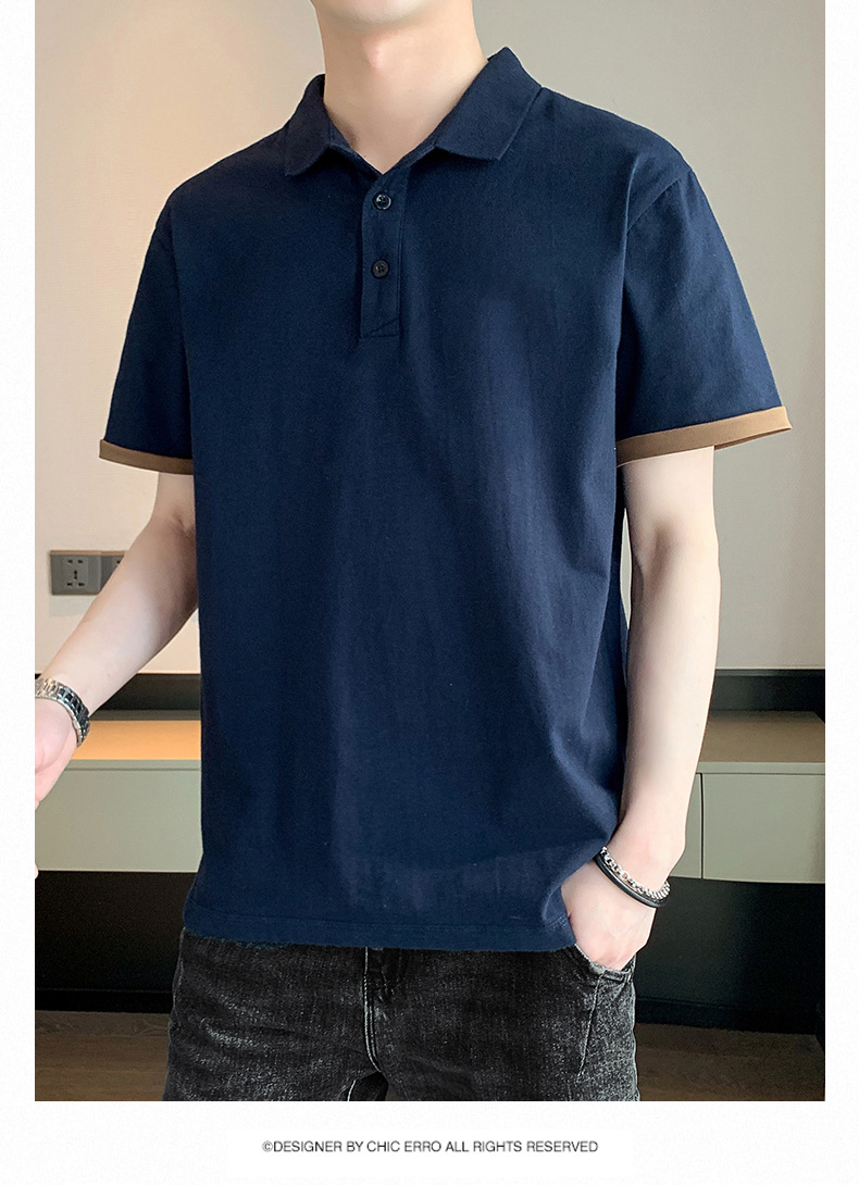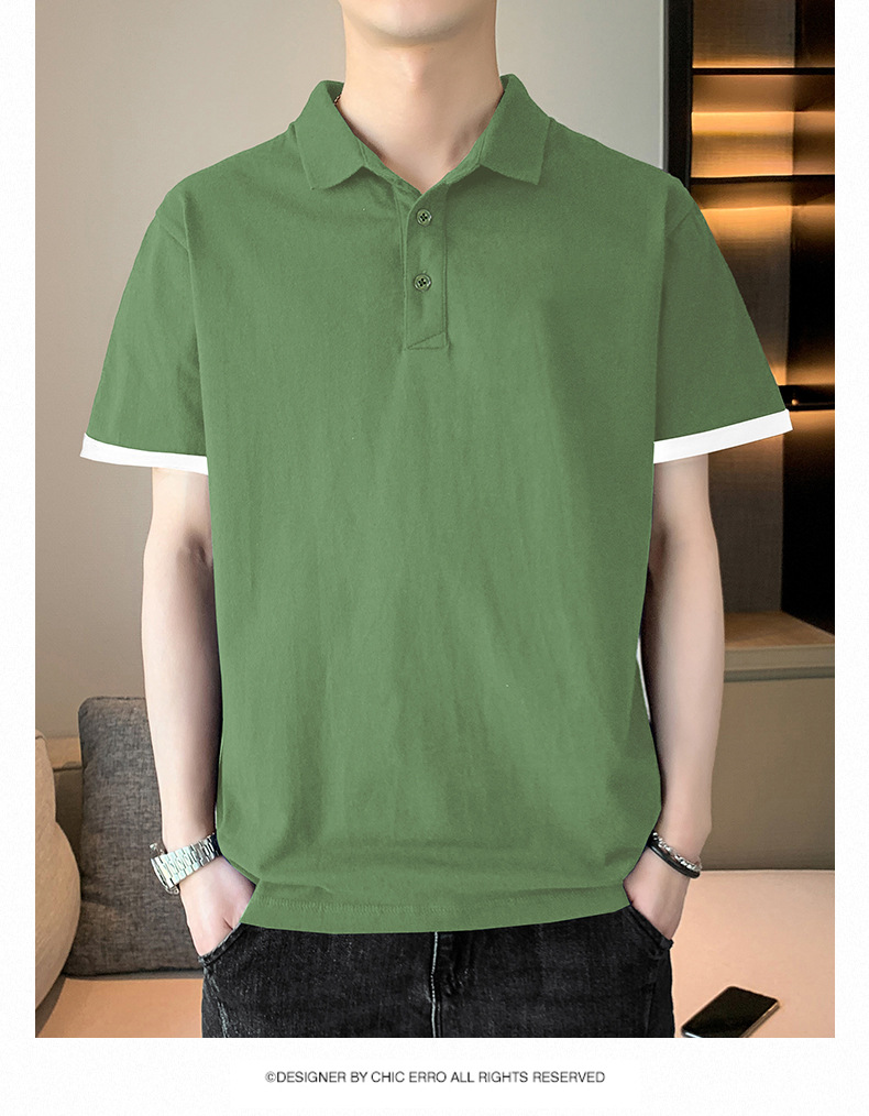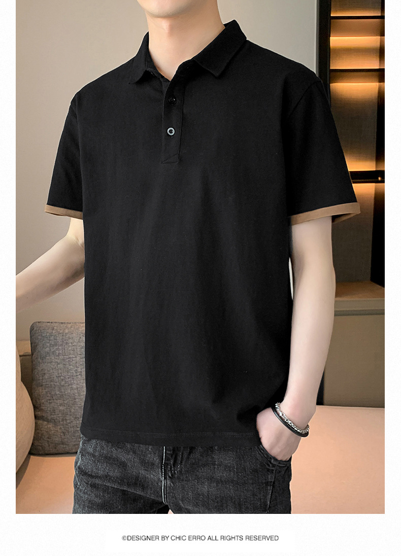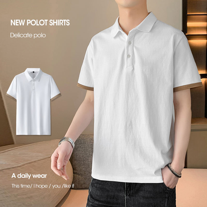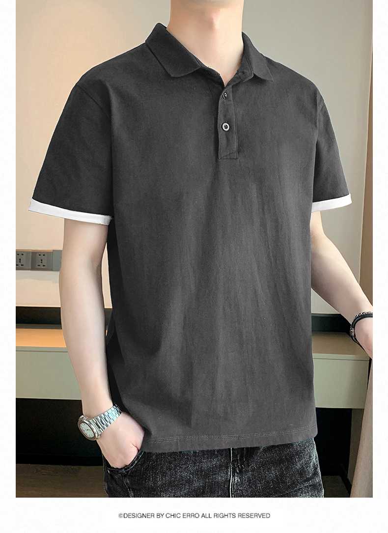 夏季纯色短袖POLO衫男公版韩版光版翻领T恤大码珠地棉冰丝男装t恤