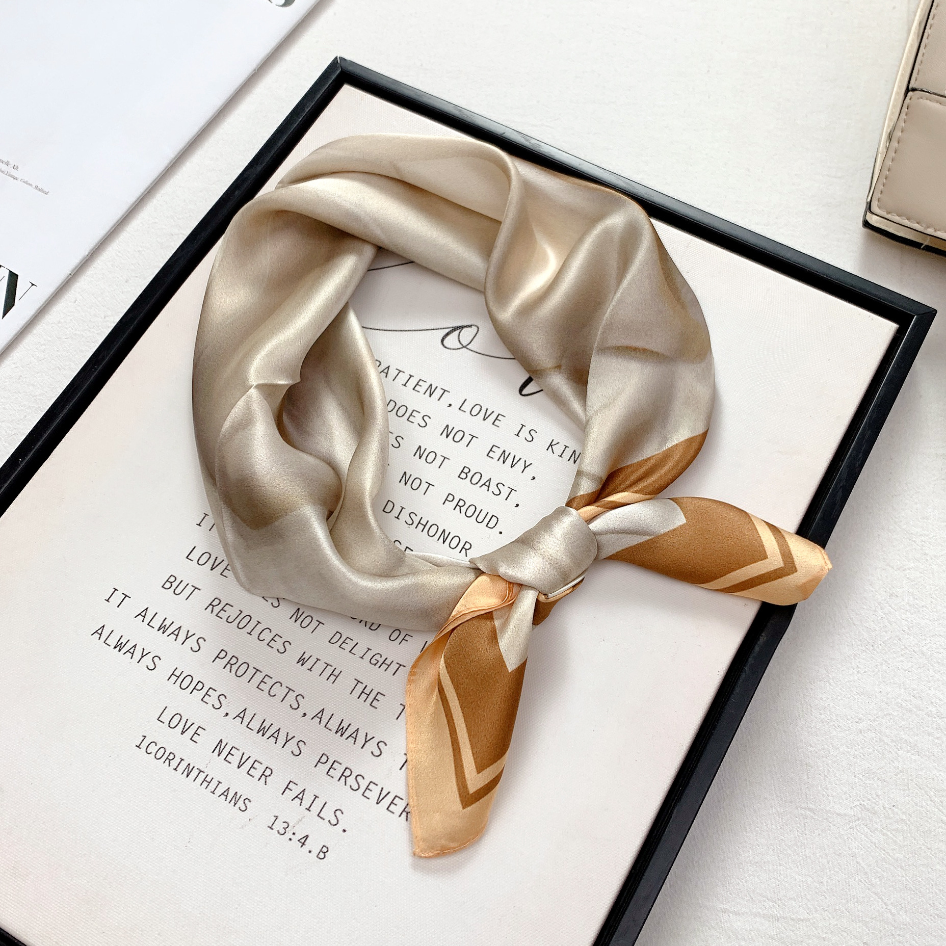 法式复古油画真丝丝巾女秋季新款时尚100%桑蚕丝中方巾护颈领巾女