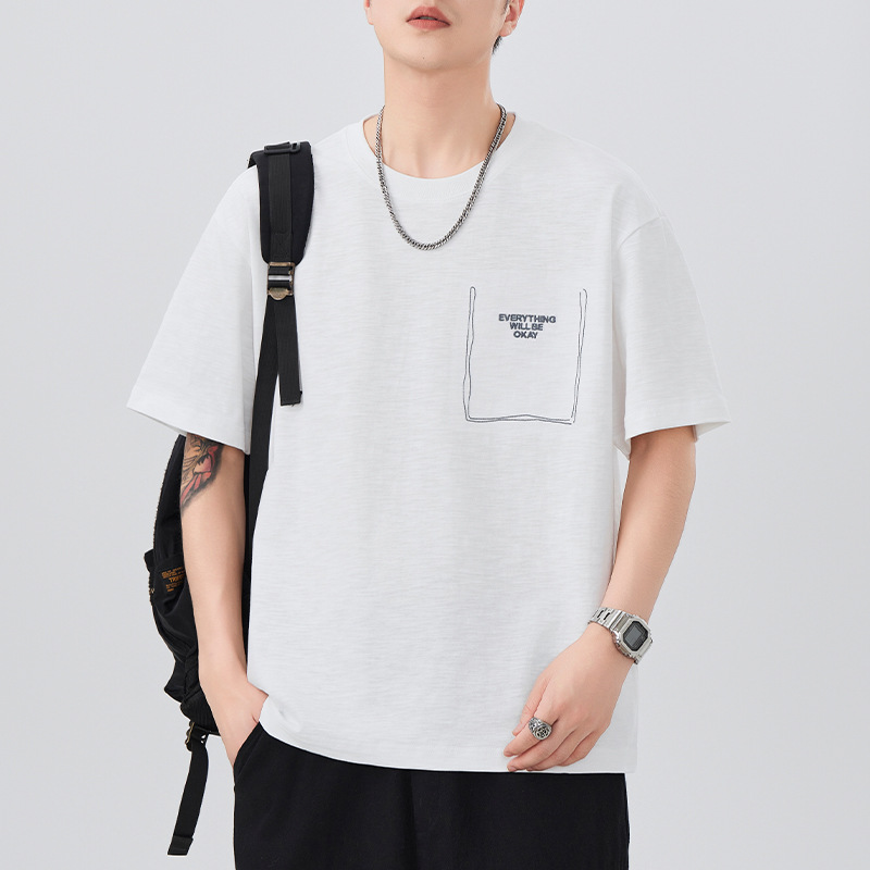 短袖T恤男夏季新款刺绣230g纯棉重磅圆领半袖体恤衫百搭休闲上衣