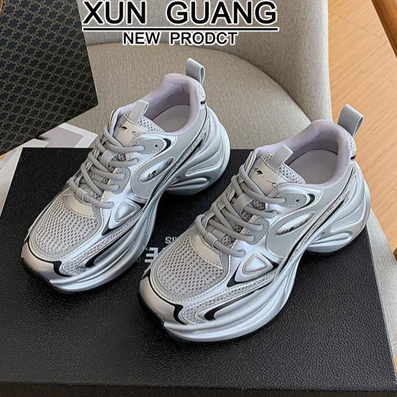 厚底增高银色老爹鞋女ins潮春季新款时尚百搭透气运动休闲鞋