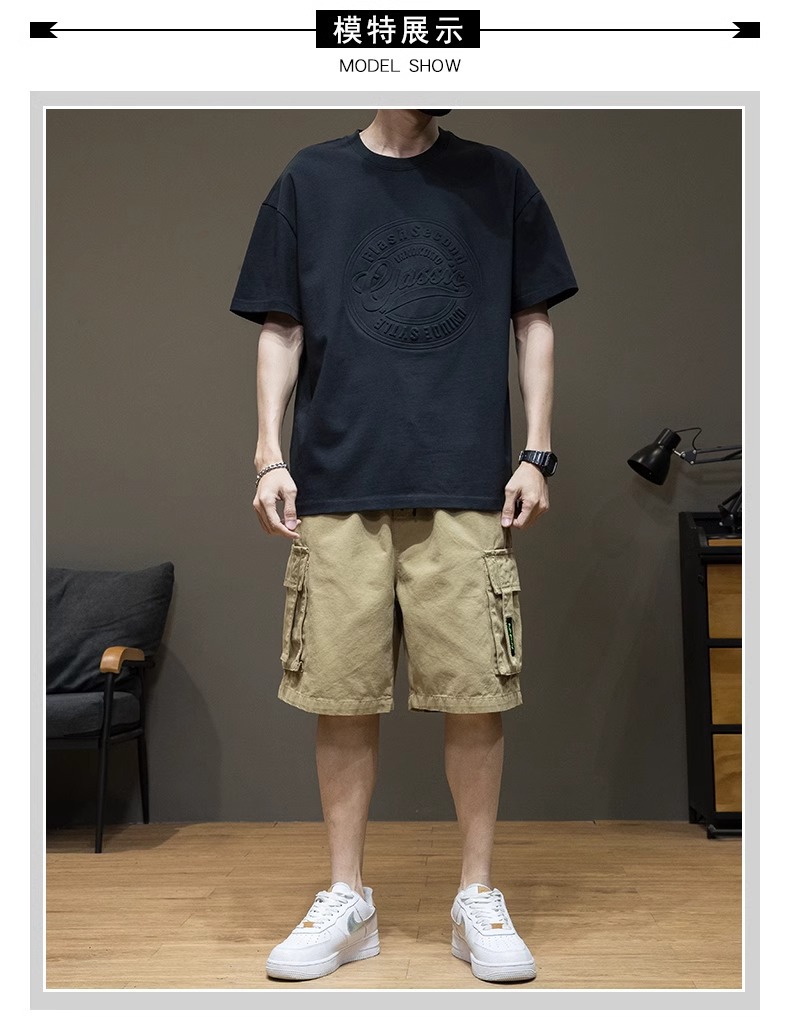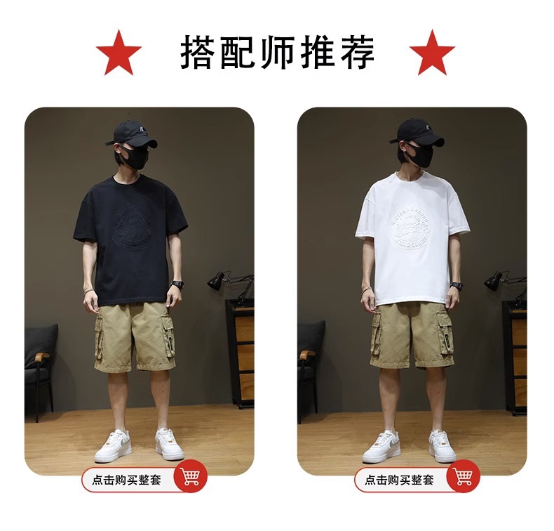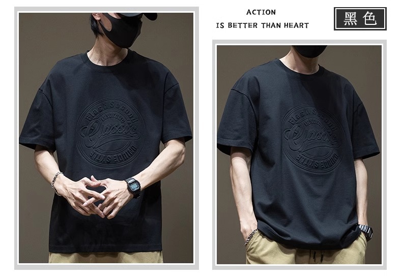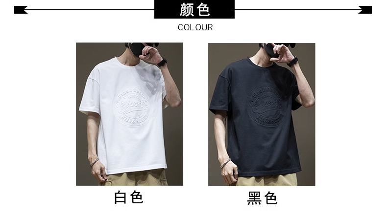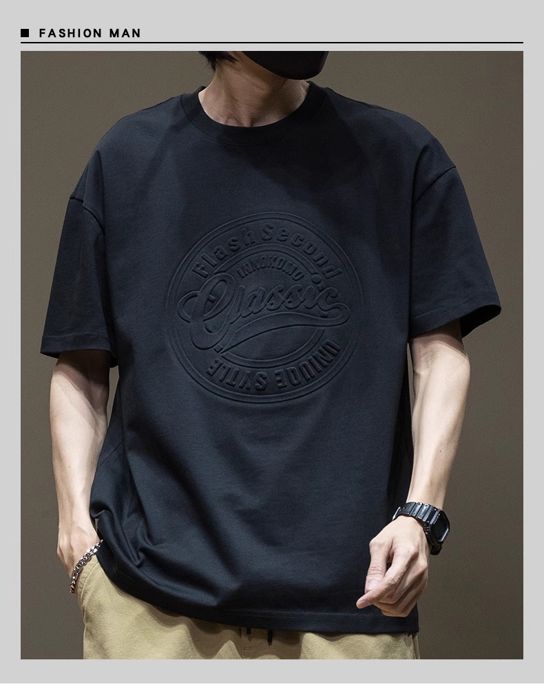 原版潮牌美式重磅260克纯棉双纱立体字母短袖T恤男宽松大码夏季潮