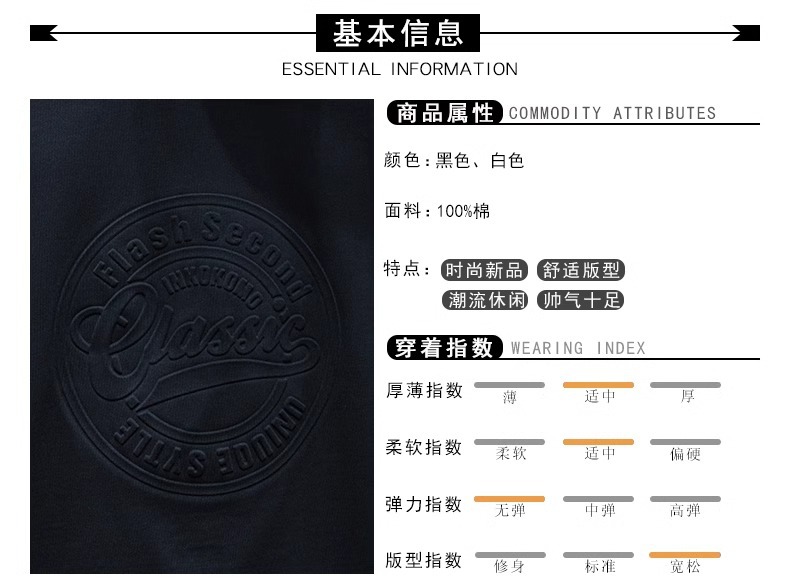 黑色【立体字母260克纯棉双纱】