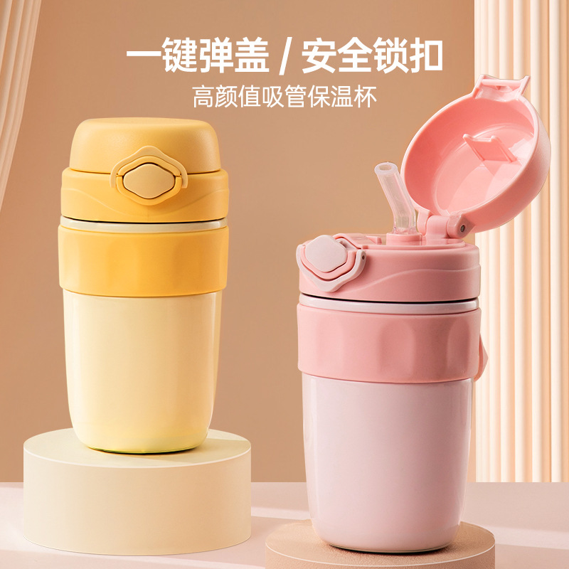 保温杯高颜值吸管水杯可爱学生简约便携弹跳盖316不锈钢随手杯子