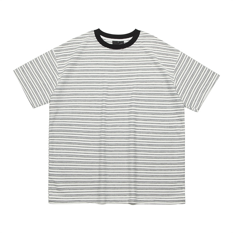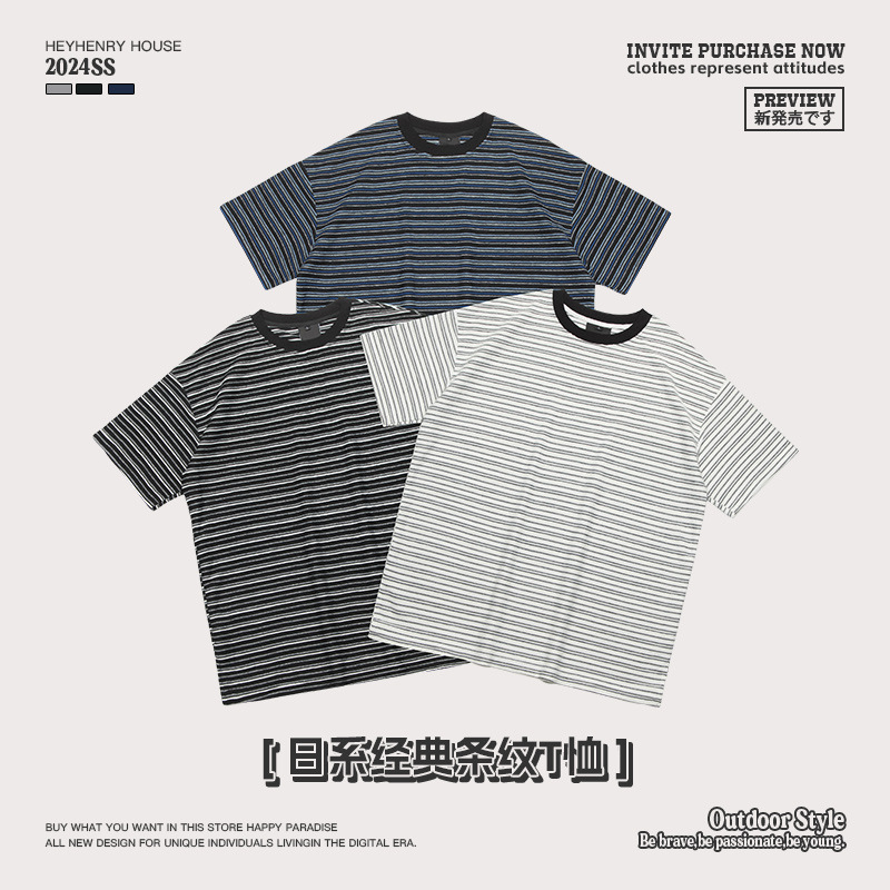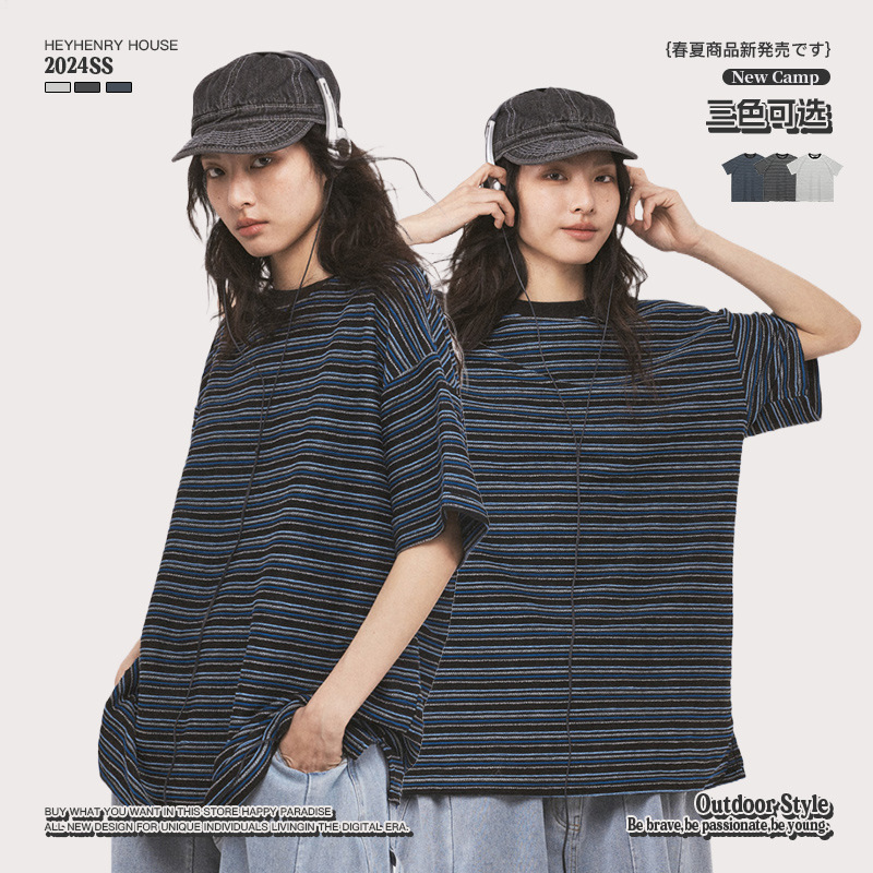 HeyHenry 男装韩版宽松条纹纯色小清新情侣短袖t恤休闲百搭半袖夏