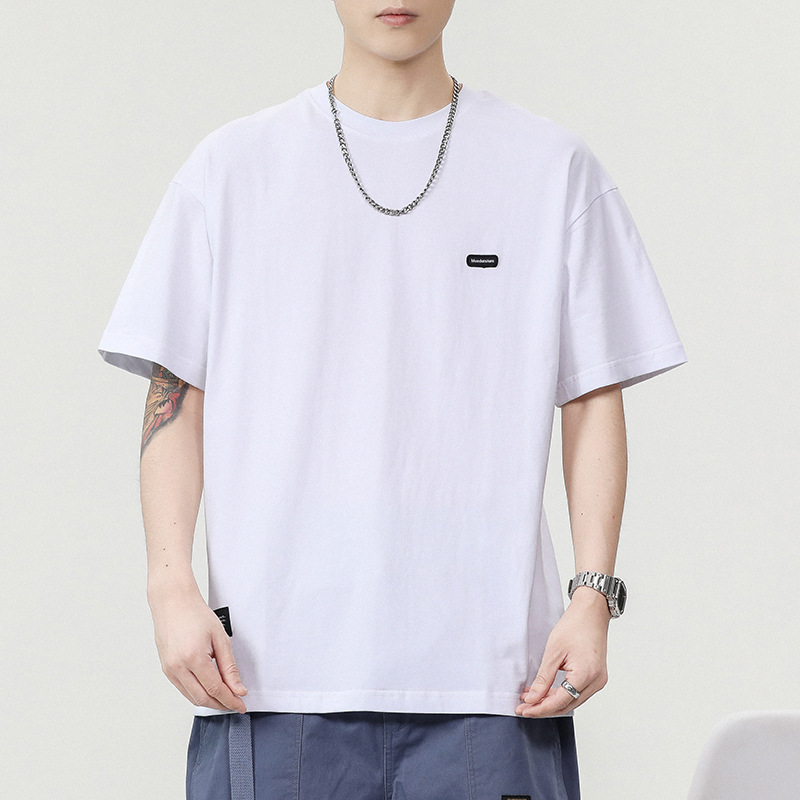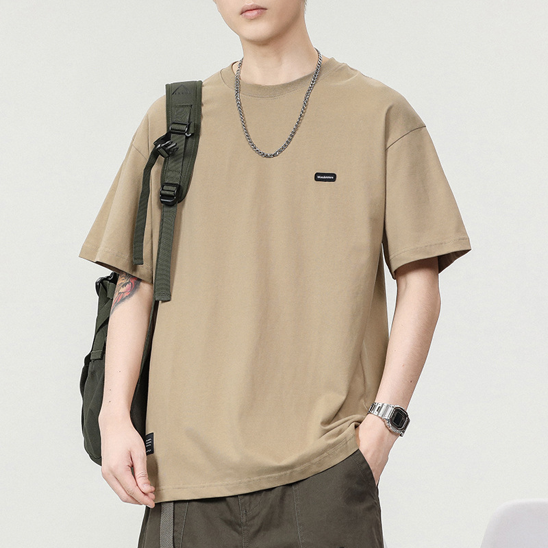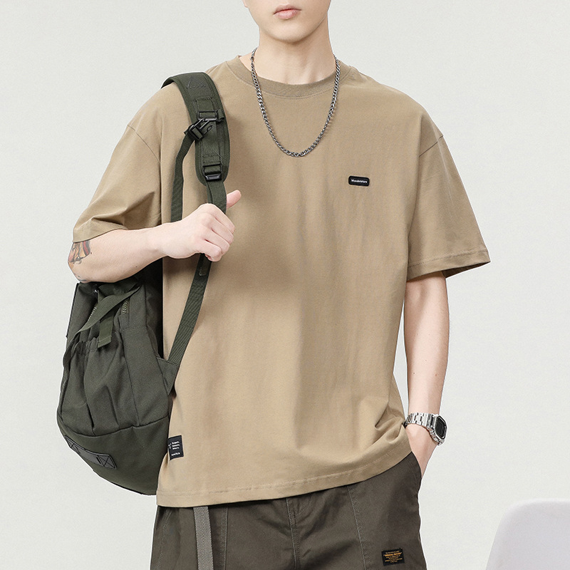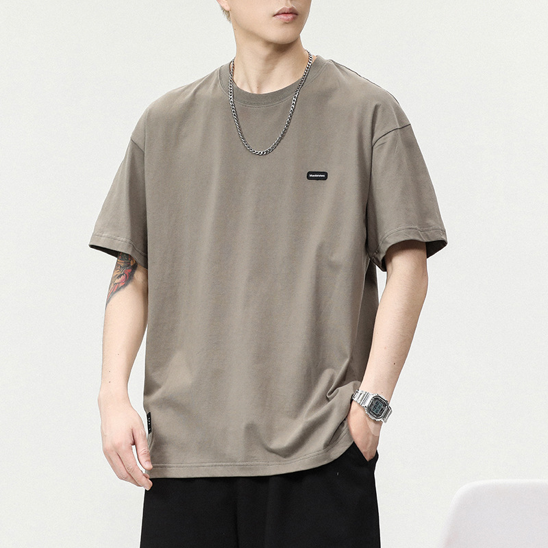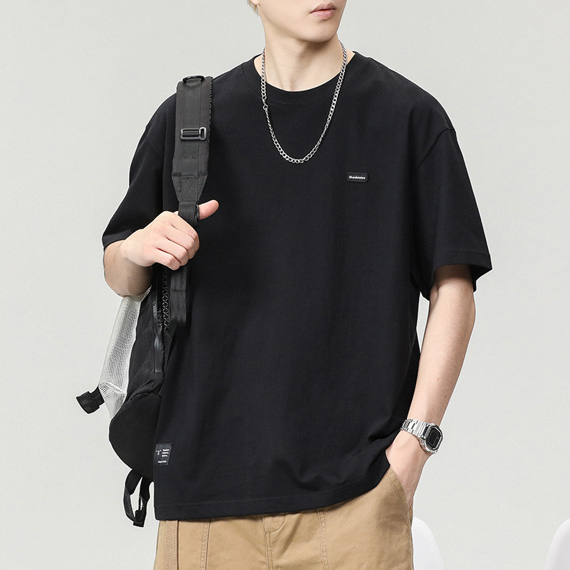 280g重磅纯棉短袖t恤男潮流刺绣小标圆领美式宽松半袖