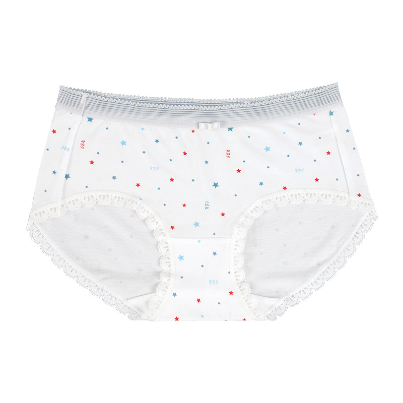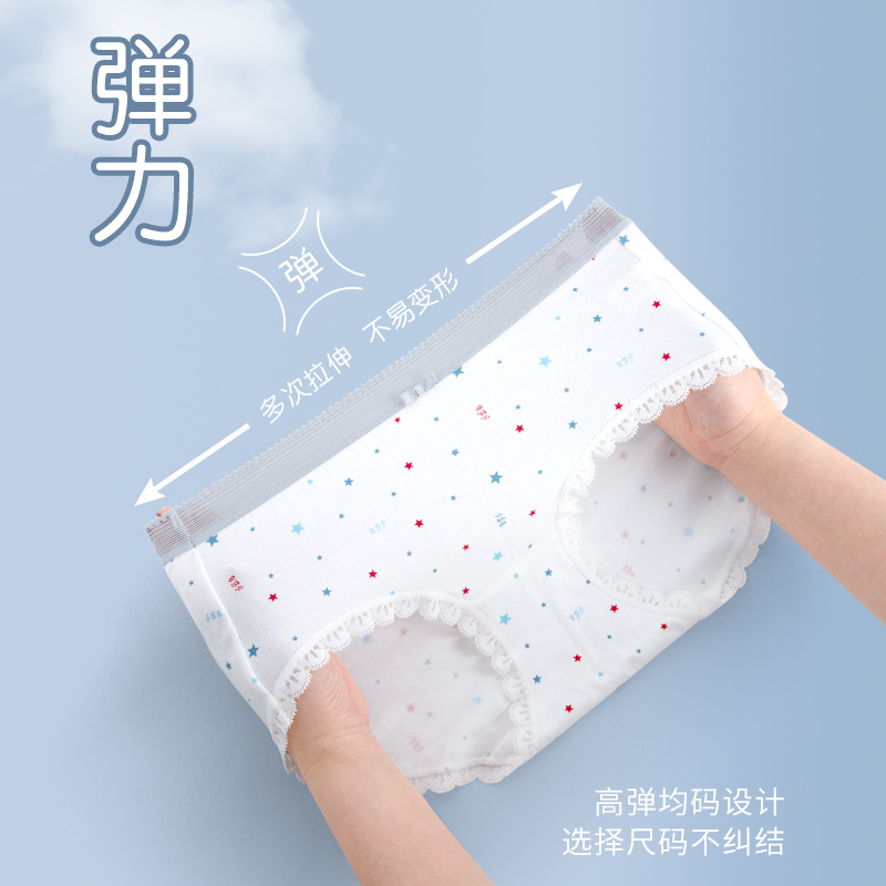 高弹中腰碎花内裤纯棉女抗菌印花日系少女甜美蕾丝薄款舒适三角裤