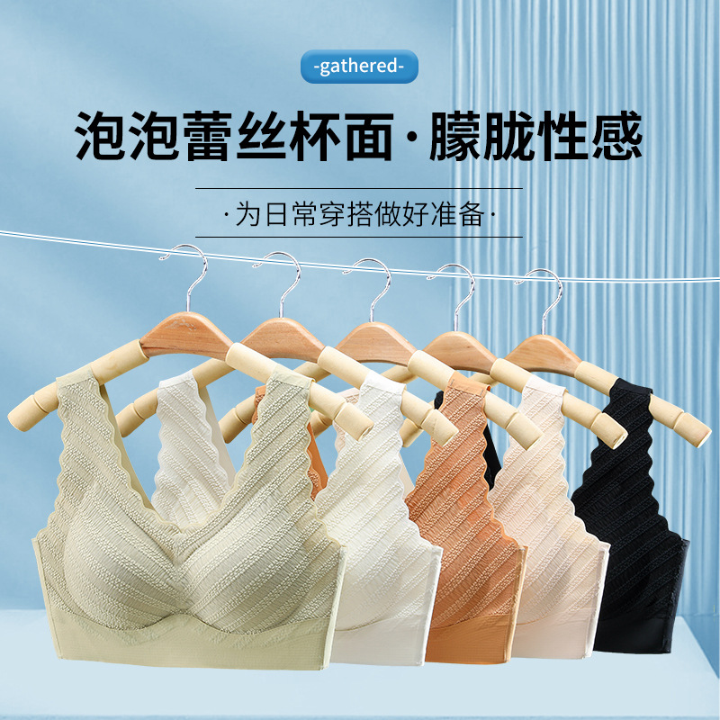 蕾丝聚拢美背内衣无痕裸感无钢圈固定杯收腹乳上托大码运动文胸罩