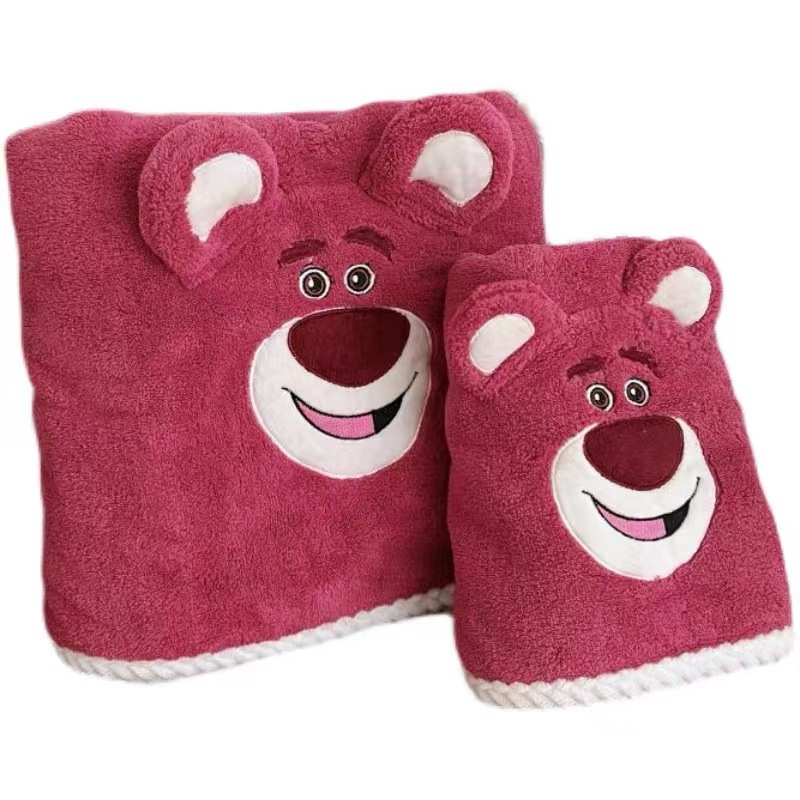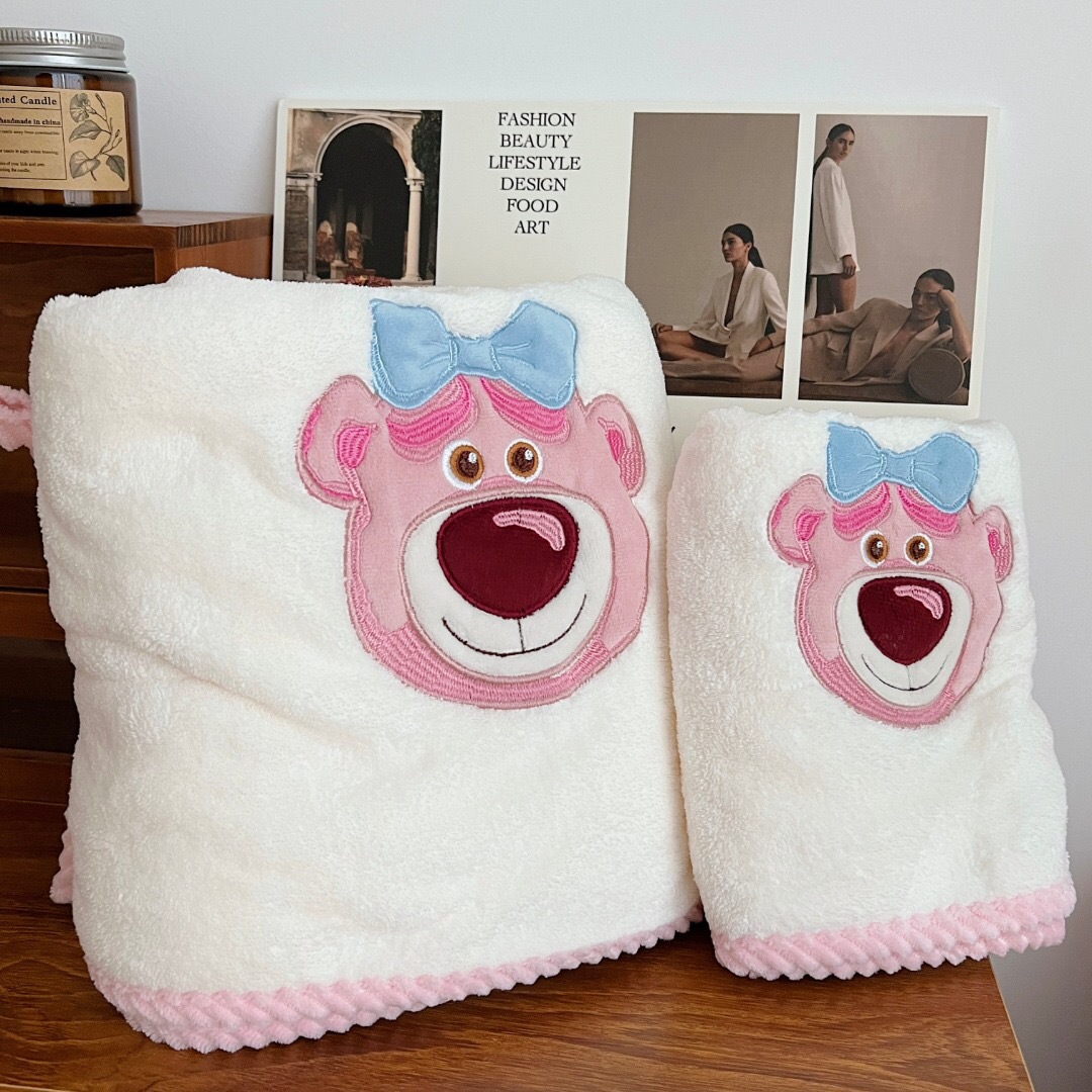 新款草莓熊浴巾两件套吸水毛巾浴巾套装卡通洗澡沙滩巾