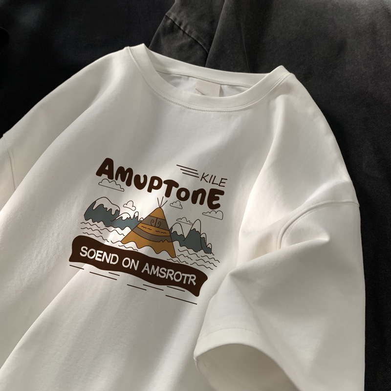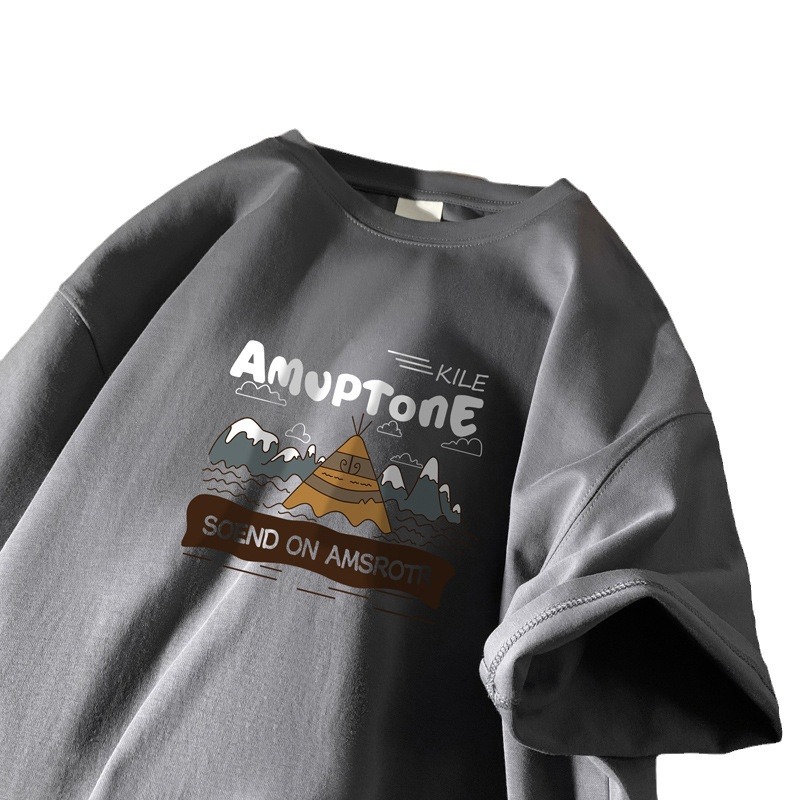 hiphop酒红色短袖t恤男夏季纯棉重磅半袖oversize宽松休闲上衣服